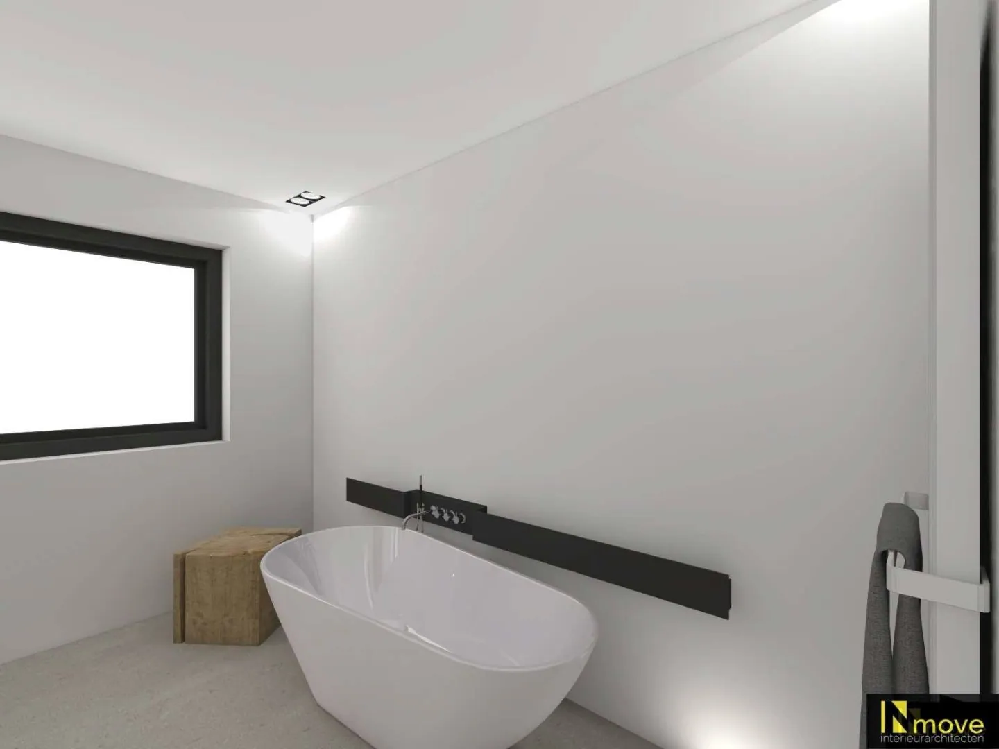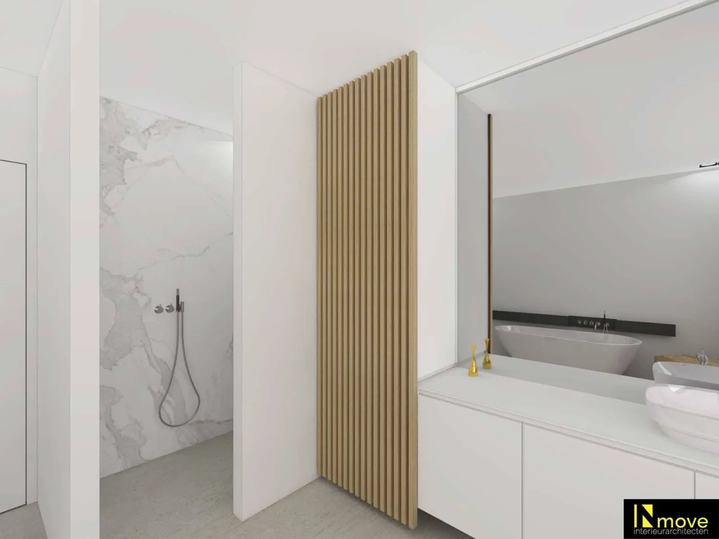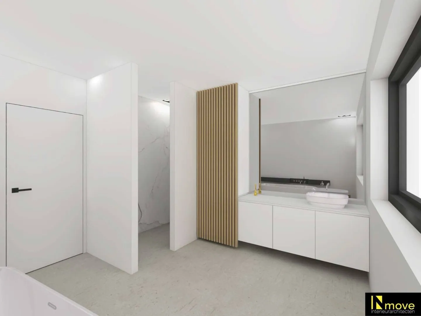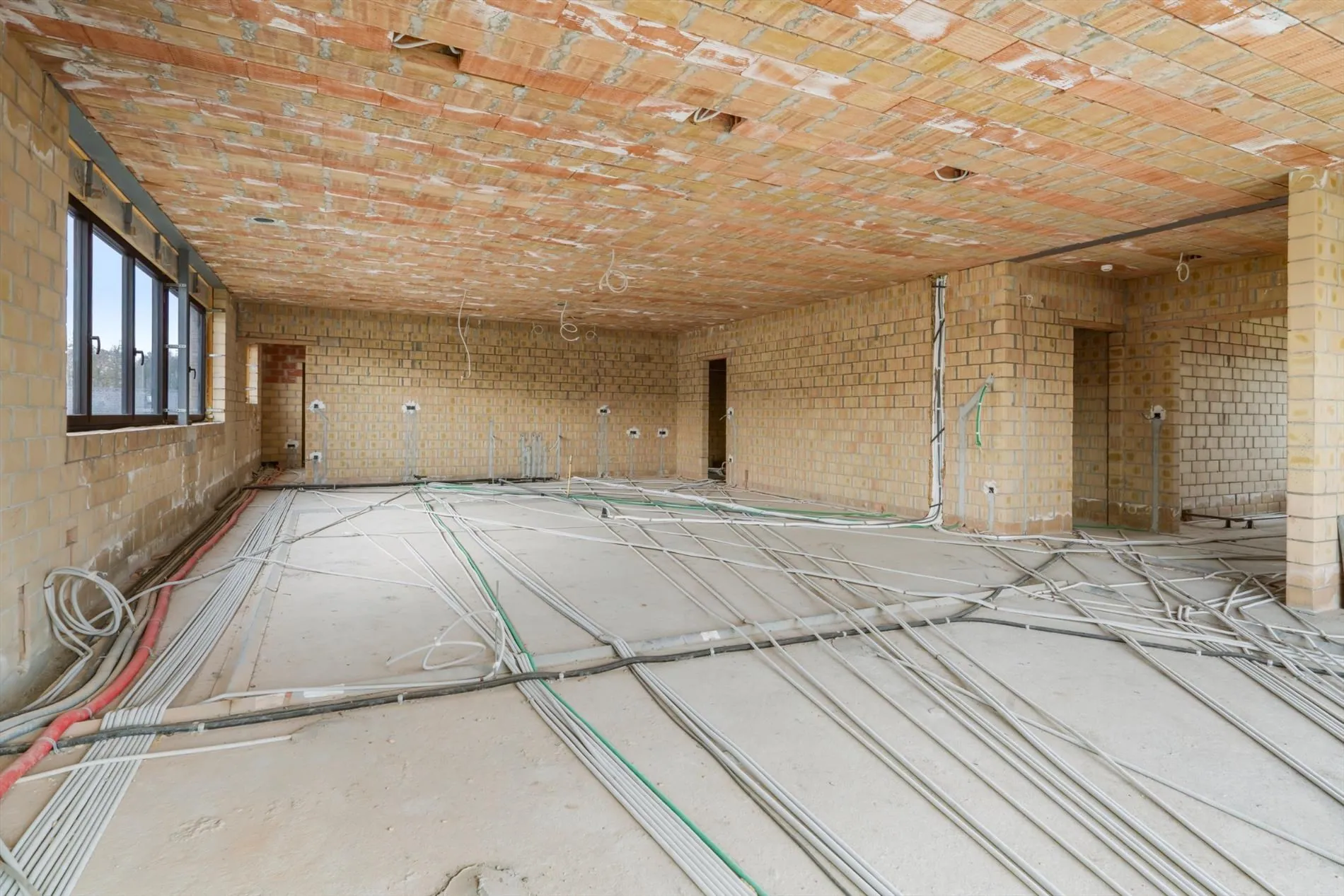 Alle afvoeren, inbouwelement toilet en douche, elektricitieit, gas, domotica, collectoren voor vloerverwarming, airco liggen klaar om aangesloten te worden.