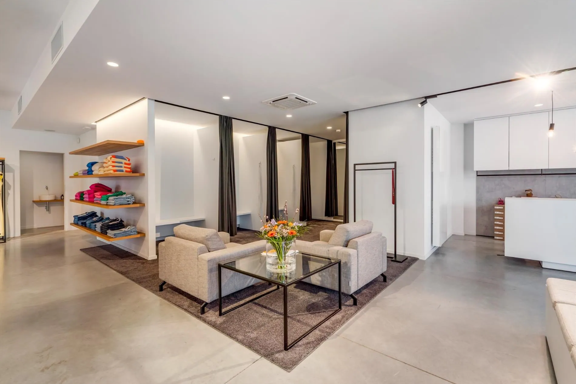 een bebouwde handelsoppervlakte van 370 m² - ruime privé parking met 8 parkeerplaatsen voor de zaak - garage van maar liefst 60 m² met een industrieële garagepoort - de volledige handelsruimte is afgewerkt met hoogwaardige materialen - domotica op afstand te bedienen of via display voor alarm, camera's, tuinhekken, deurbel, garagepoort, verwarming, geluidsinstallatie, ledverlichting,… - zonnewering vooraan - elektrische vingerafdruklezers die toegang verlenen tot de deuren zonder sleutel - glasbreukdetectie - hoogwaardig alarmsysteem aangesloten via meldkamer met verschillende zones - infrarood camerabewaking, binnen en buiten - hold up knop - volledig aangelegde en omheinde tuin, met automatische beregening op gazon en beplanting, verlichting, grondspots, ruime oprit, automatisch hekken, alle aansluitingen zijn voorzien voor zwembad in de tuin - industrieële ... luchtventilatie (alle voorzieningen en aansluitingen voor de woonst boven zijn ook reeds aanwezig) - warmtepomp - zonneboiler - extra regenwaterput - 4 airco modules in de zaak aanwezig (warmte en koeling) - verwarming met radiatoren op aardgas.