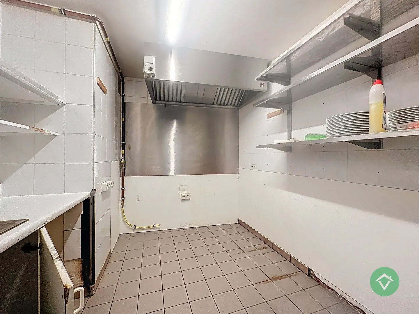 Het pand staat momenteel leeg en biedt een volledig ingerichte horecastructuur met tal van mogelijkheden. Binnenin beschikt u over een ruime handelsruimte met plaats voor circa 60 personen, een centrale toogzone met tapinstallatie, een keuken, sanitair en praktische stockageruimtes achteraan.