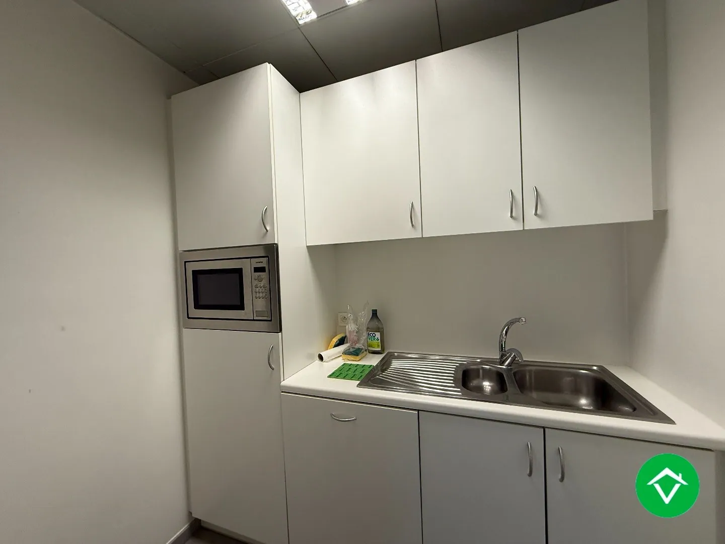 De ruimte bestaat op vandaag uit een open landschapskantoor en twee aparte burelen/vergaderzalen. Het handelspand beschikt tevens ook over een ruime keuken met opbergruimte - technische ruimte - twee toiletten - administratieve ruimte voor printer... Tevens beschikt het pand over een energiezuinig aircosysteem.