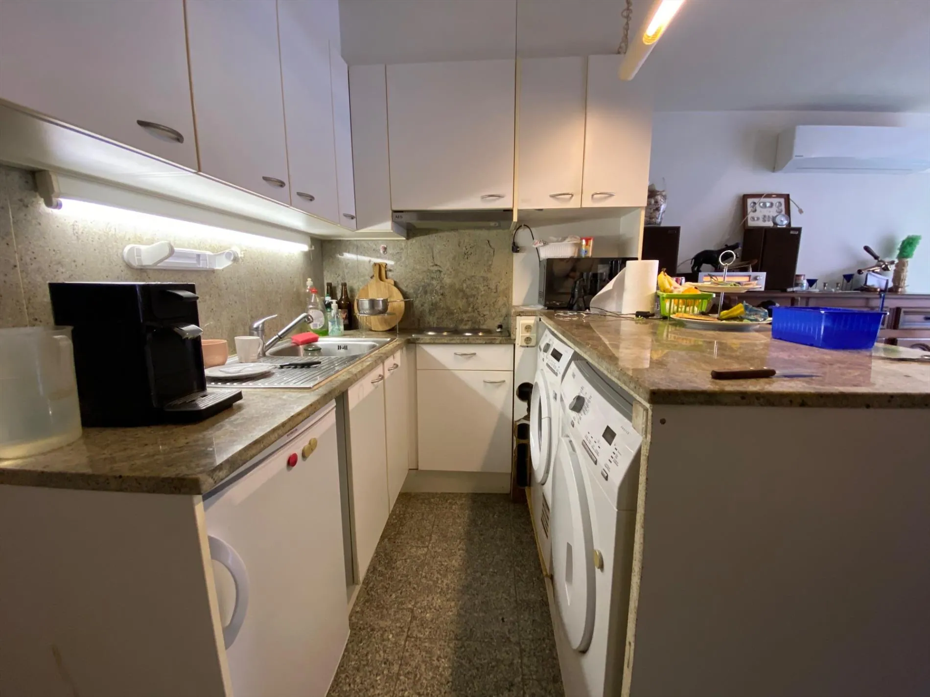 Deze gelijkvloerse studio bestaat uit: living met open keuken - grote kelder - badkamer - toilet - groot zonneterras - tuin - tuinhuis.
