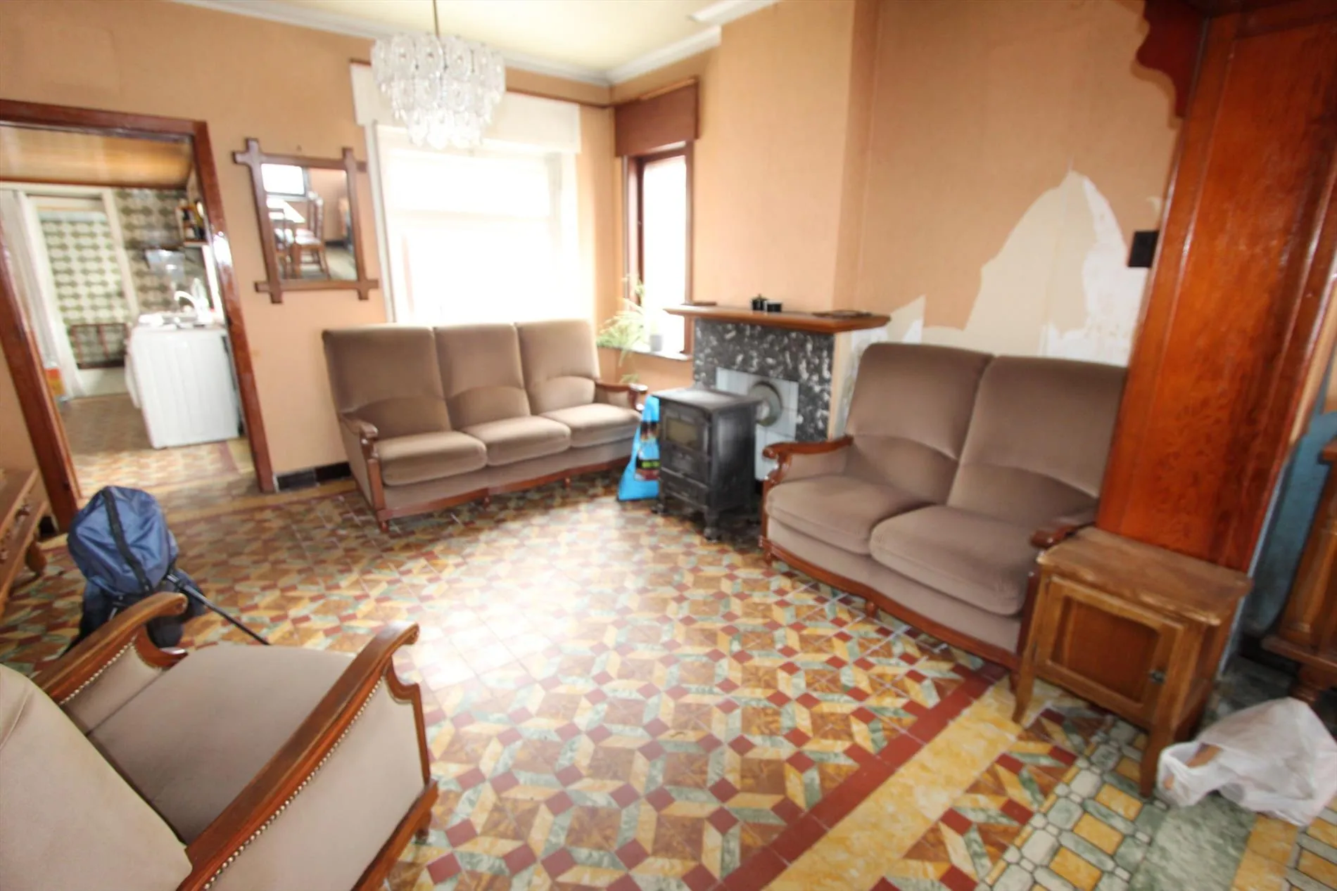 Deze halfopen bebouwing bestaat uit: inkomhal - living - keuken - kelder - veranda - badkamer - toilet - tuin - garage - oprit - 2 slaapkamers. Vaste trap naar de zolder met mogelijkheid tot inrichten van meerdere slaapkamers.
