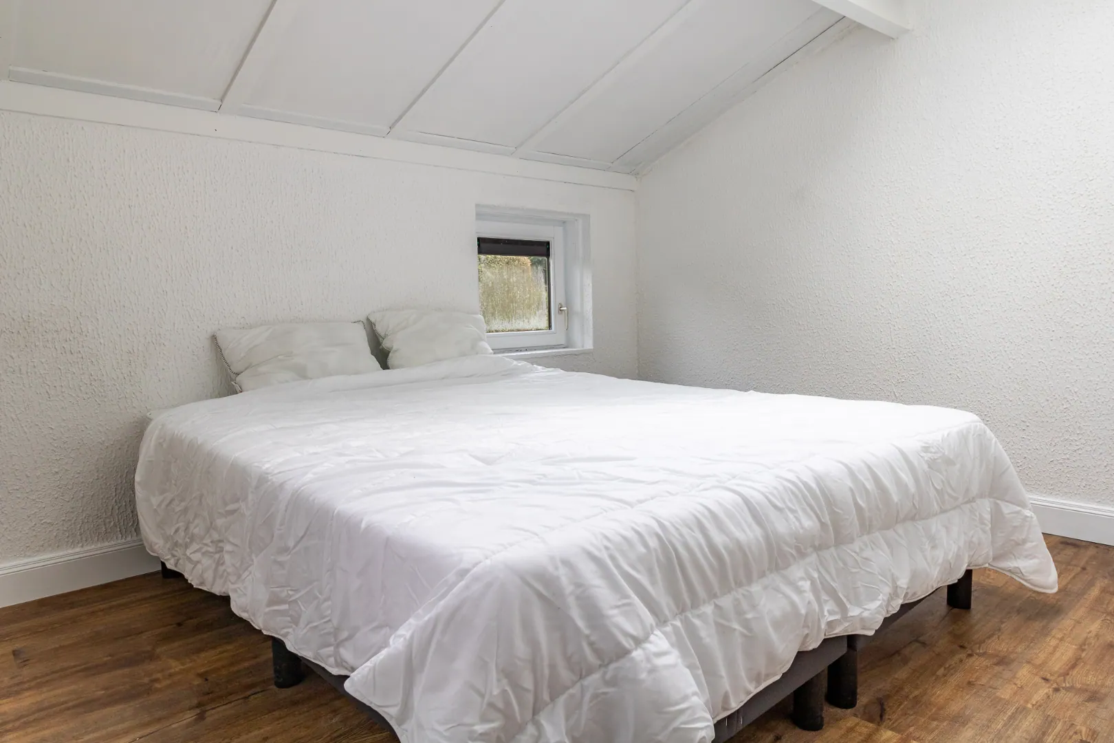 inkomhal - woonkamer met houtkachel en open keuken (voorzien van koelkast, diepvries, vaatwasser, oven en microgolf) - badkamer - slaapkamer