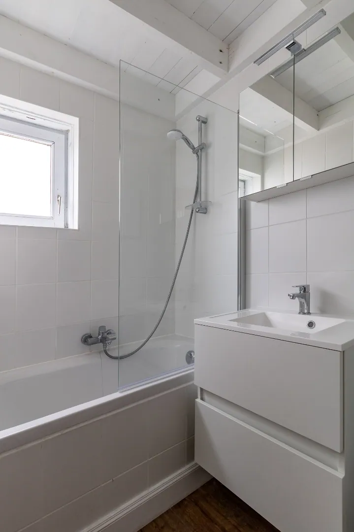 Op het verdiep bevinden zich 2 slaapkamers en een hal met ingebouwde kasten.