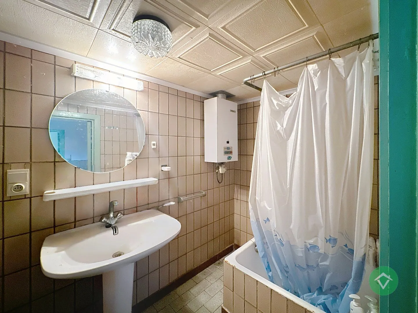 U komt binnen via de inkomhal met vaste trap naar de verdieping. Op het gelijkvloers vindt u een ruime woonkamer met aansluitend de gesloten keuken. Achteraan bevindt zich de veranda, die mogelijkheden biedt om de leefruimte open en ruimer te maken. Verder zijn er nog een berging en badkamer aanwezig.