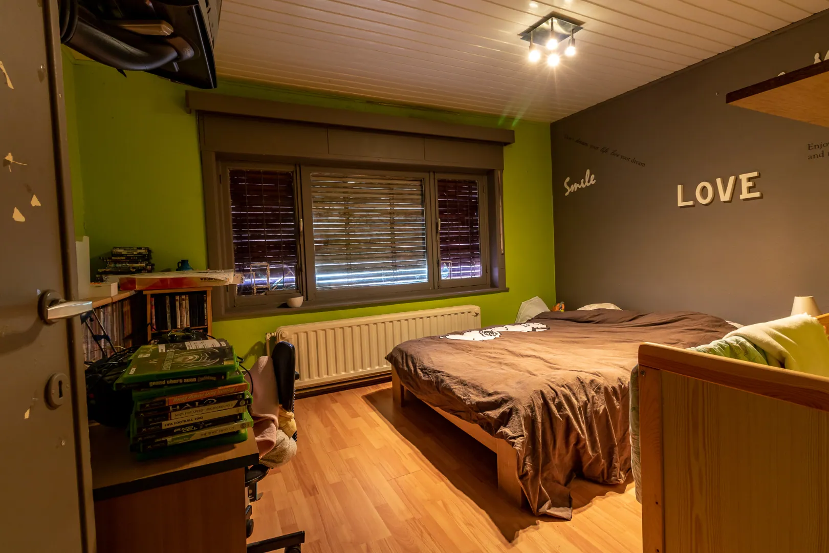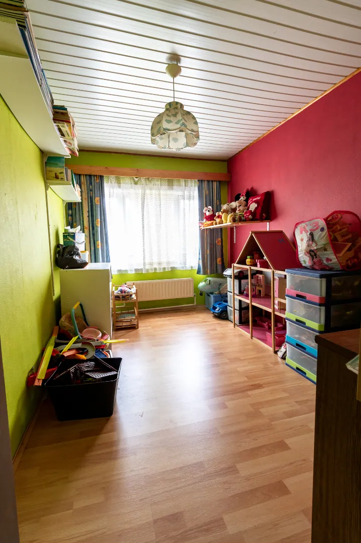 Op het eerste verdiep bevinden zich 3 slaapkamers - 1 kinderkamer/ bureau / berging - badkamer voorzien van bad, douche en wastafel - toilet. Alsook toegang tot zolder
