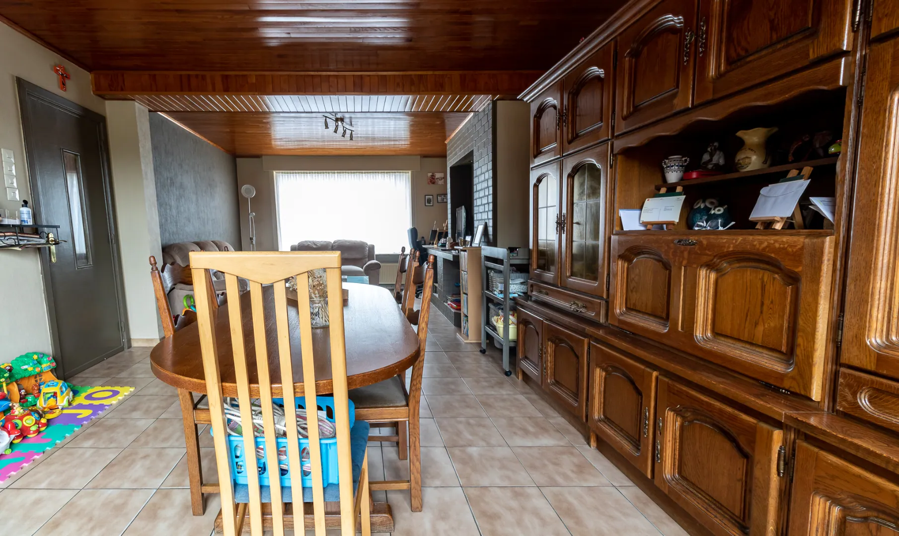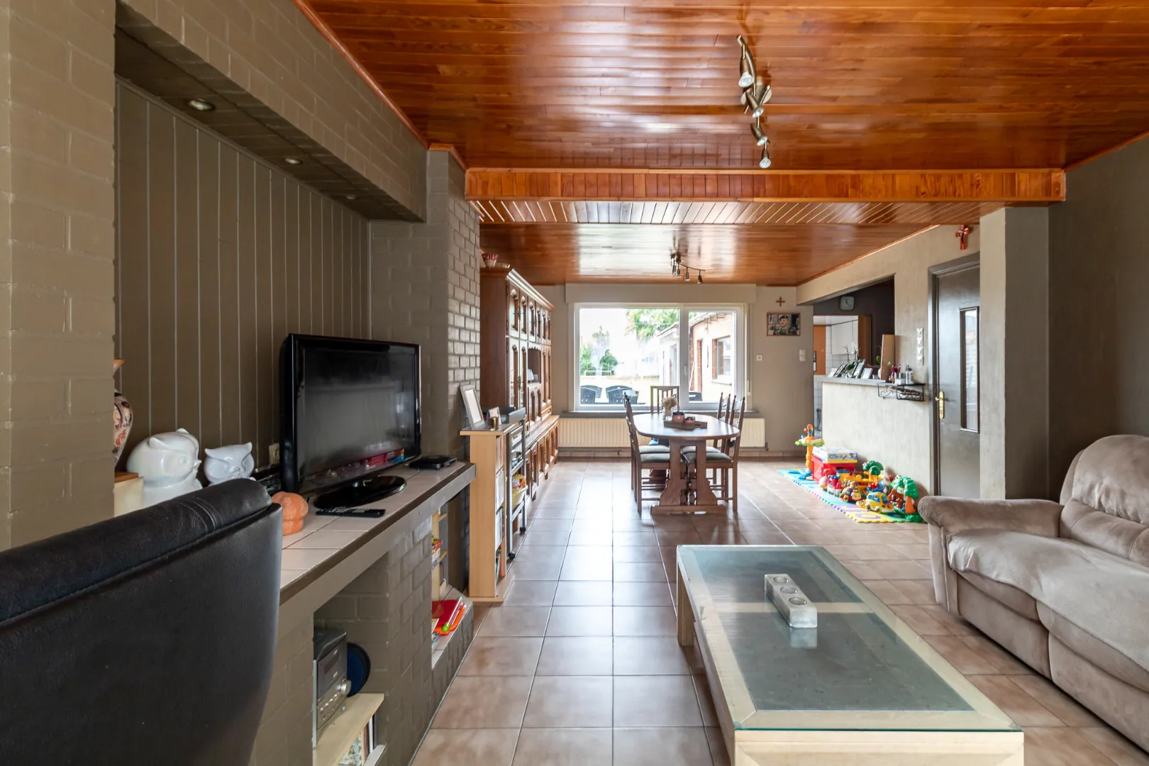 Ruime gezinswoning ingedeeld als volgt : inkomhal - lichtrijke woonkamer , de l-vorm zorgt voor de mogelijk om een bureau in de woonkamer te plaatsen - keuken - apart toilet - wasberging - garage die doorgang biedt tot de tuin - diepe tuin voorzien van tuinberging.