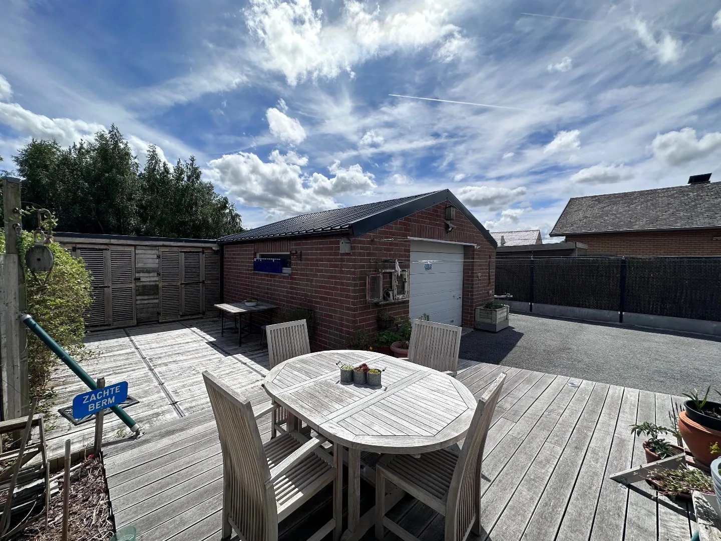 Gelijkvloers: grote oprit - inkomhal - toilet - living - ruime recent vernieuwde keuken - wasplaats - berging - dressingruimte - 1 slaapkamer - badkamer met inloopdouche en toilet - terras - tuin - overdekt terras - buitenberging - kleine atelier.