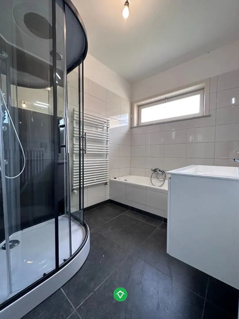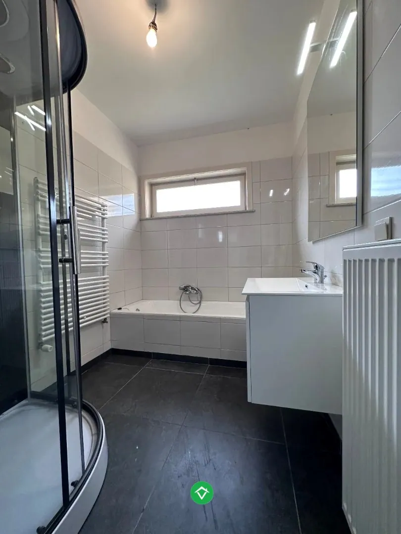 Binnenkomen doet u via de inkomhal, uitgerust met gastentoilet. Deze biedt onmiddellijke toegang tot de lichtrijke woonkamer. De woonkamer geniet van natuurlijk lichtinval door de talrijke ramen aanwezig. Aansluitend hebt u de ingerichte keuken, met toegang tot de garage die ingedeeld kan worden als wasruimte/berging en garage.