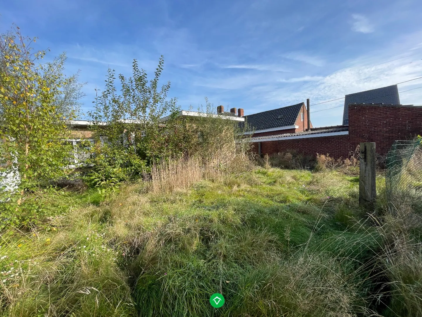 Indeling: inkomhal - toilet - bureauruimte/slaapkamer - living - keuken - berging - tweede slaapkamer - badkamer - terras - tuin en diepe garage/hobbyruimte.
