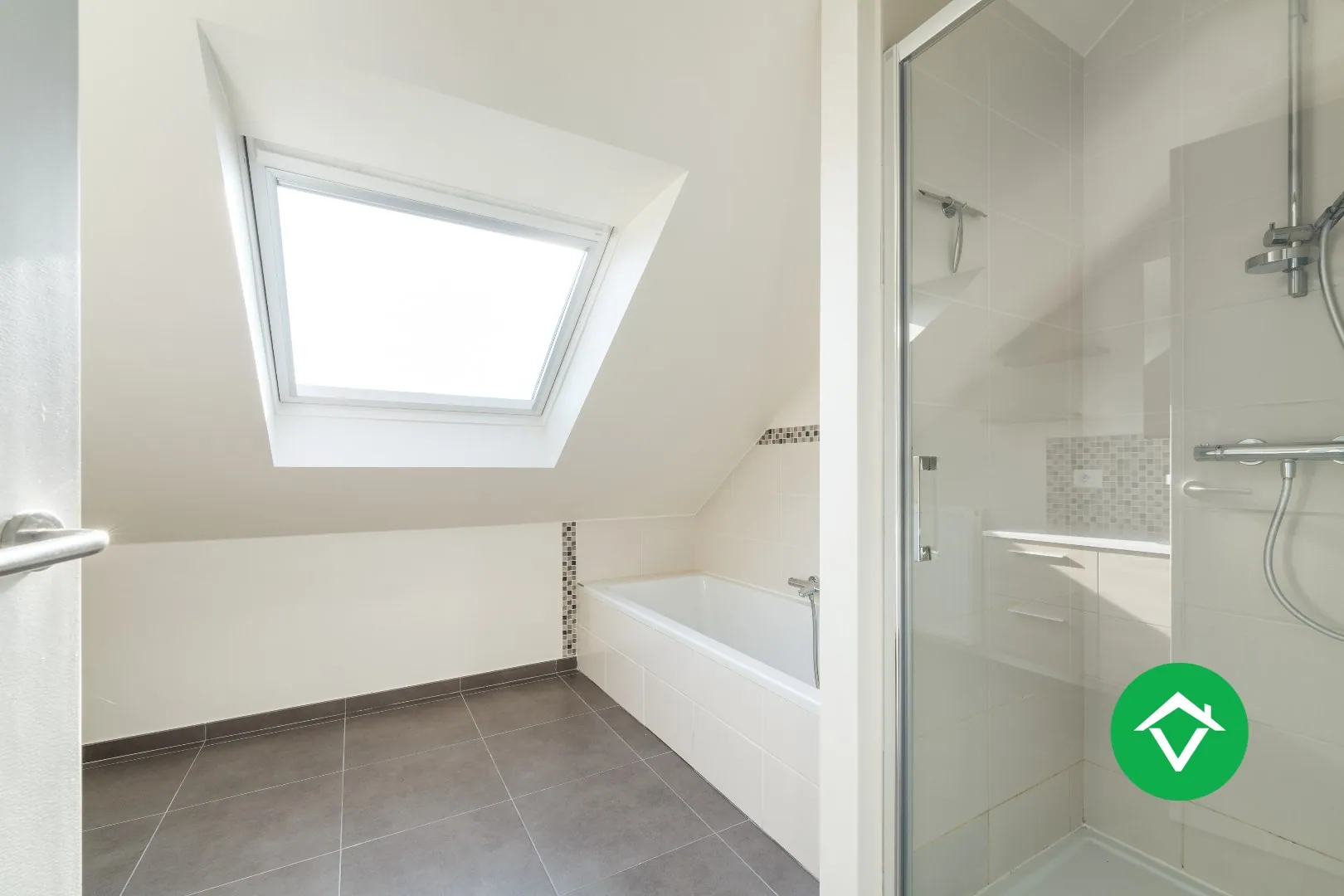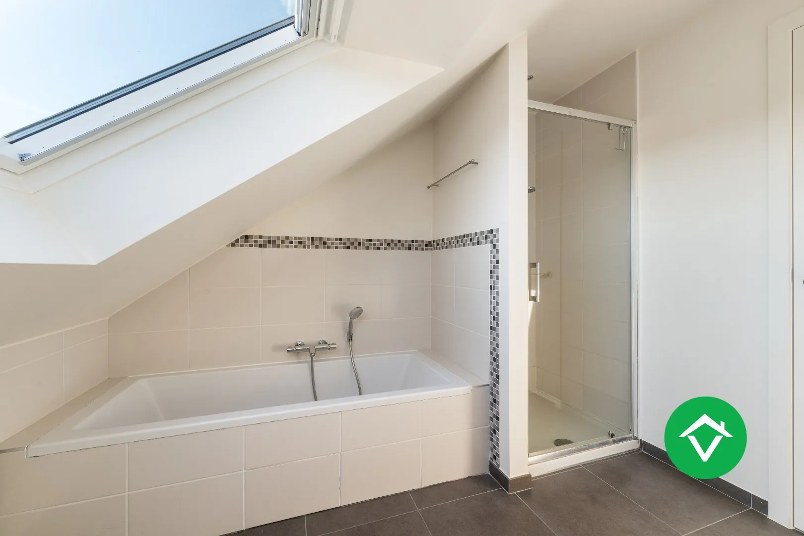 Op de bovenverdieping: 3 ruime slaapkamers (allen voorzien van zonnewering en rolluiken), waarvan 1 voorzien van inbouwkasten - afzonderlijk toilet - badkamer met lavabomeubel , ligbad en douche.