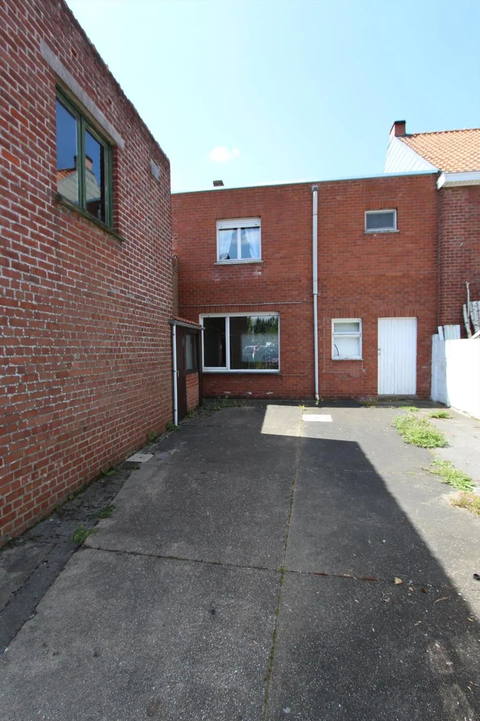 Deze woning is gelegen in een rustige straat, in het centrum van Ichtegem en bestaat uit: inkomhal - voorplaats - salon - living - keuken - terras - diepe tuin - diverse stenen bergingen - 5 slaapkamers - toilet - badkamer - zolder te bereiken met een vast trap - grote garage. KI 577 €.