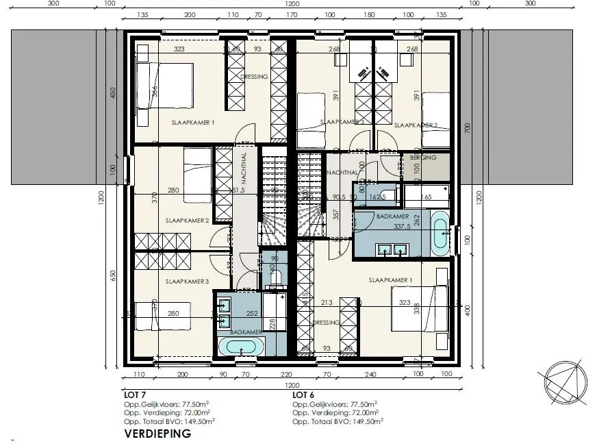 - Bebouwde oppervlakte (gelijkvloers & verdieping samen) : 149,5m²