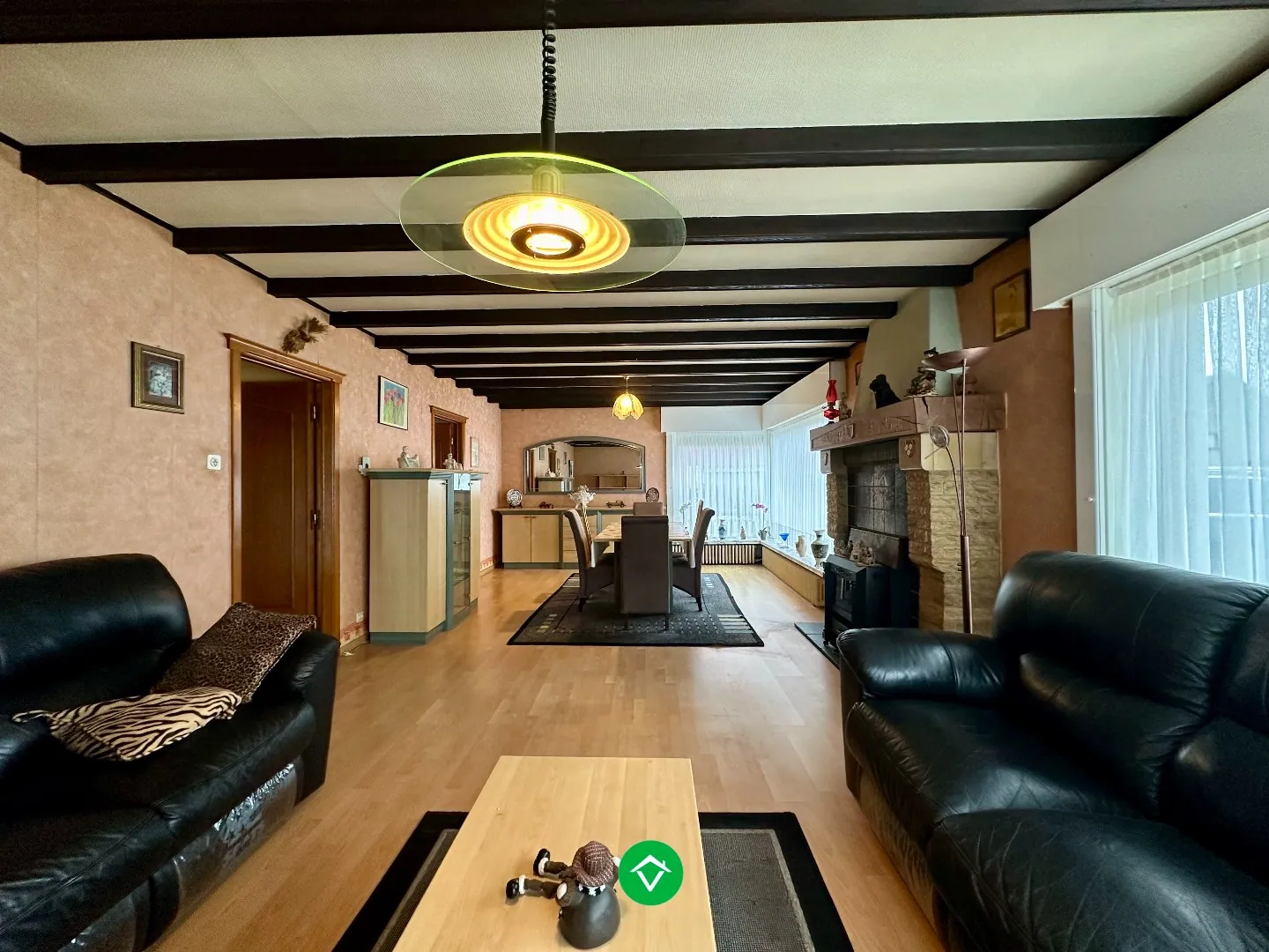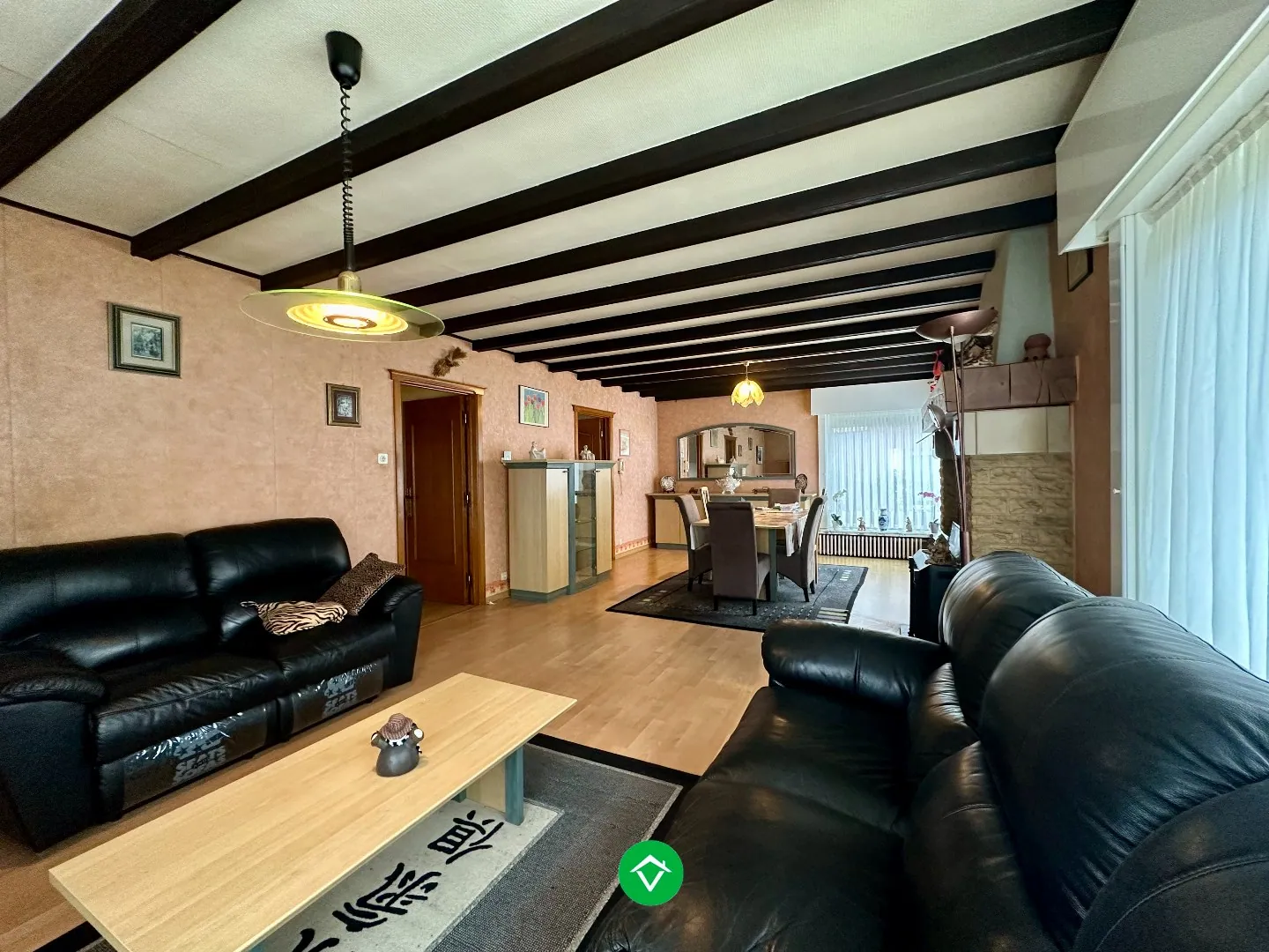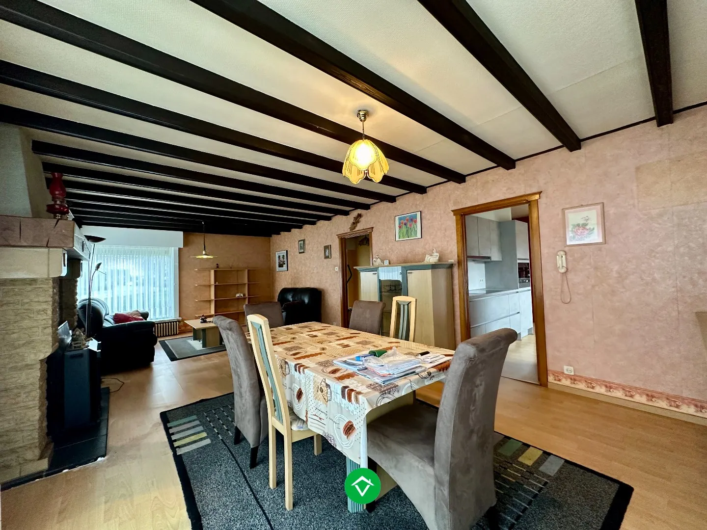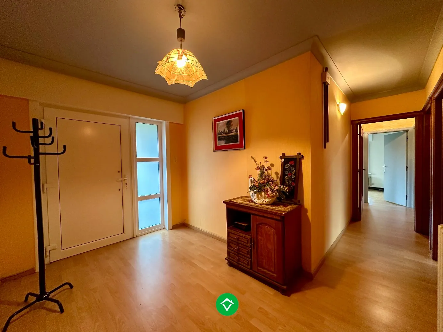 Binnenkomen via de ruime inkomhal die samen met de nachthal de verbinding vormt tussen woonkamer en slaapkamers. Aan de rechterzijde kan u de lichtrijke woonkamer terugvinden met aansluitend de gerenoveerde keuken. Deze is voorzien van de nodige toestellen. Via de keuken hebt u toegang tot de droge kelder. Verder in de nachthal kan u drie volwaardige slaapkamers terugvinden, alsook de gerenoveerde badkamer, voorzien van lavabomeubel en inloopdouche.