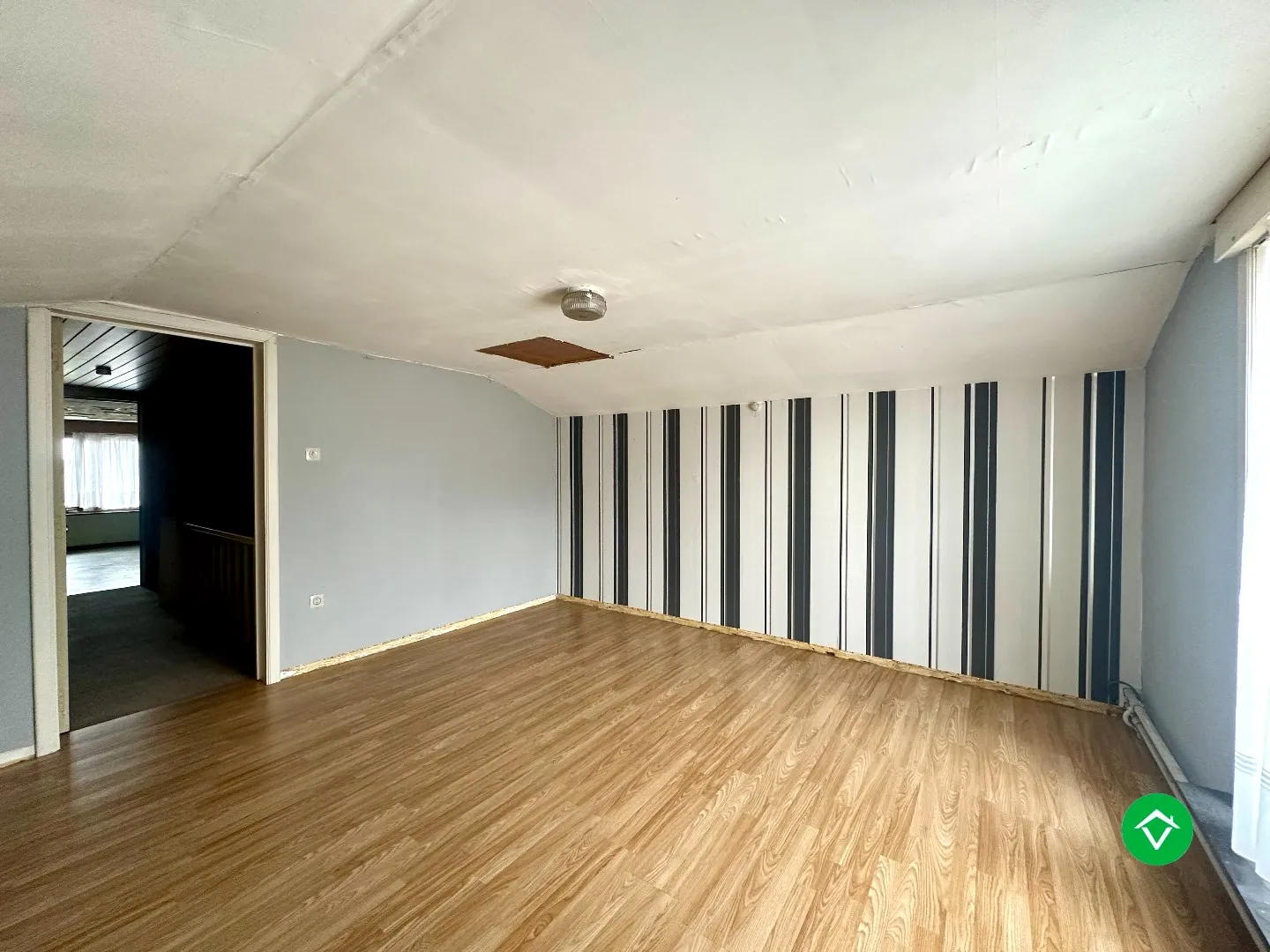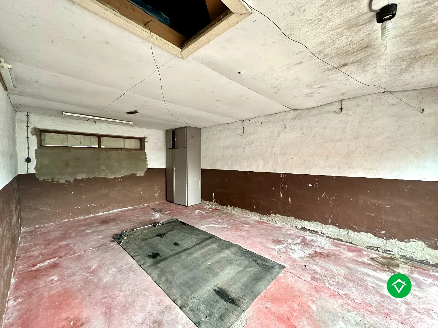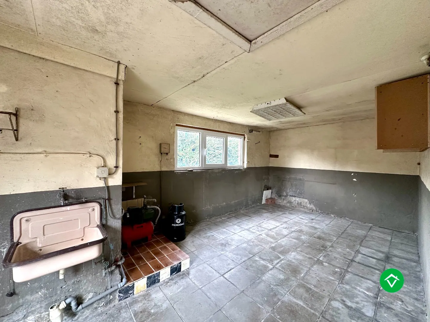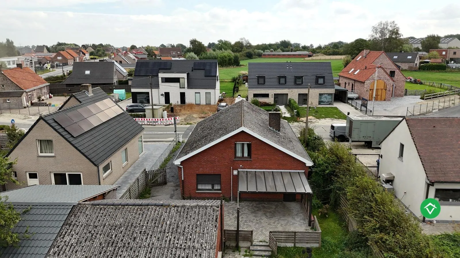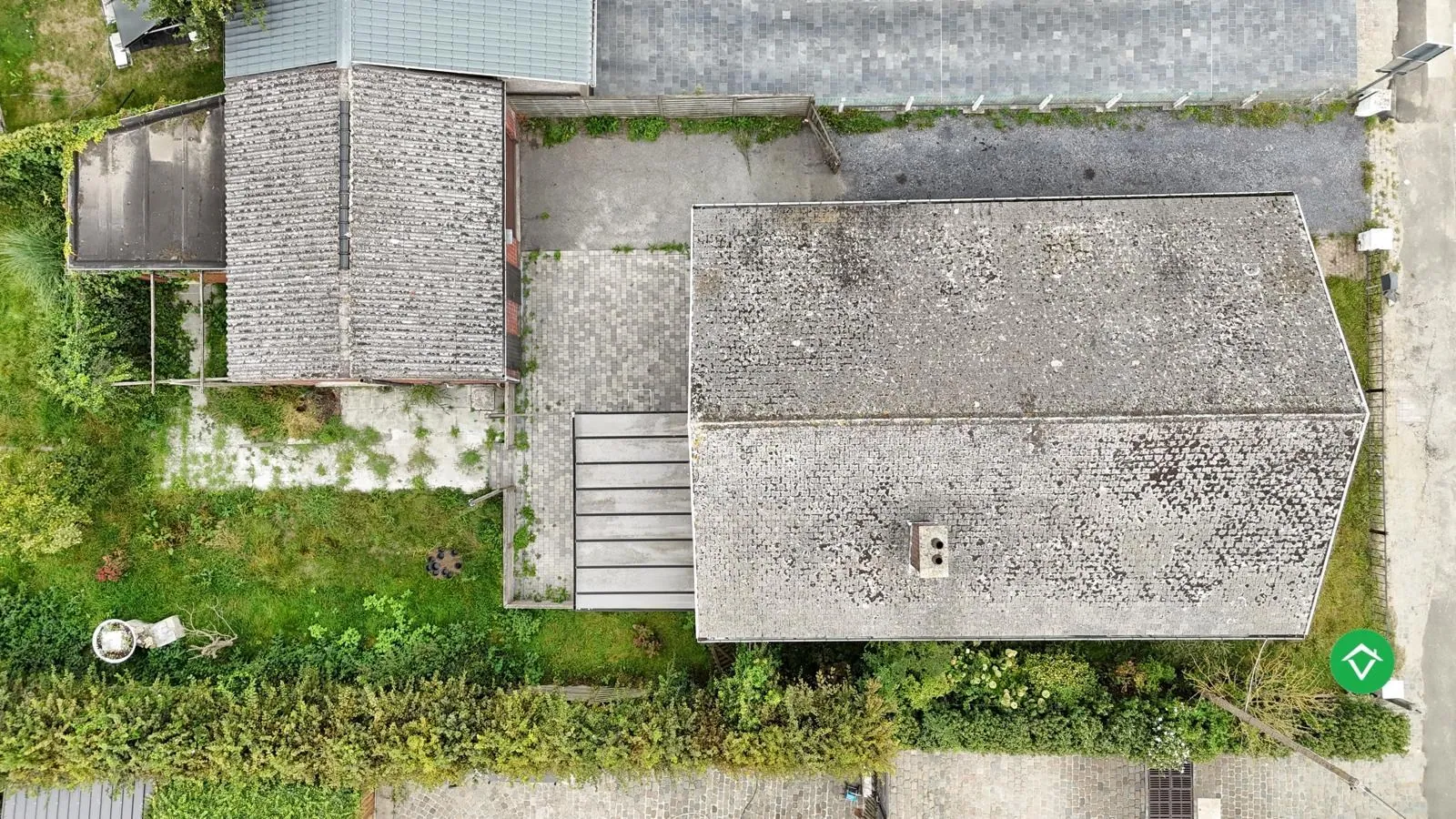 Naast de woning bevindt zich een bakstenen garage met bijkomende bergruimte. Achteraan geniet u van een aangelegd terras met zicht op de groene tuin en de achterliggende velden.
