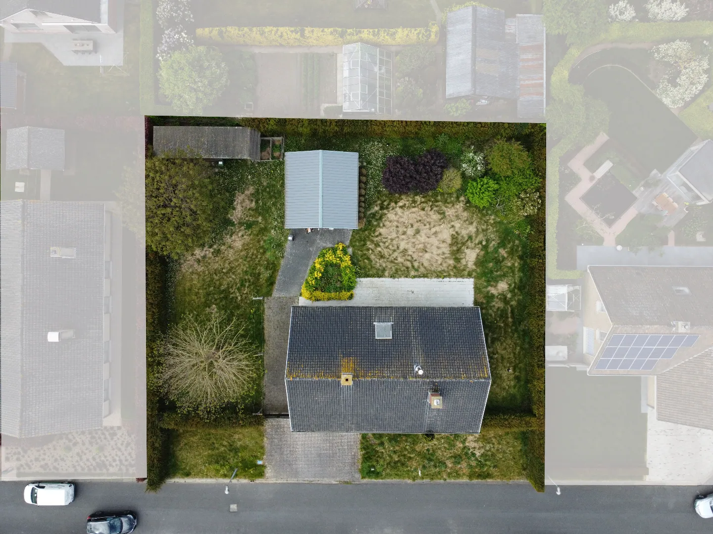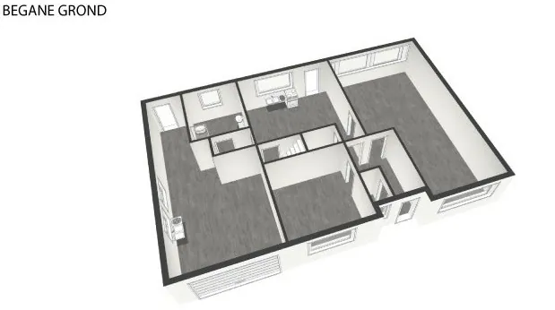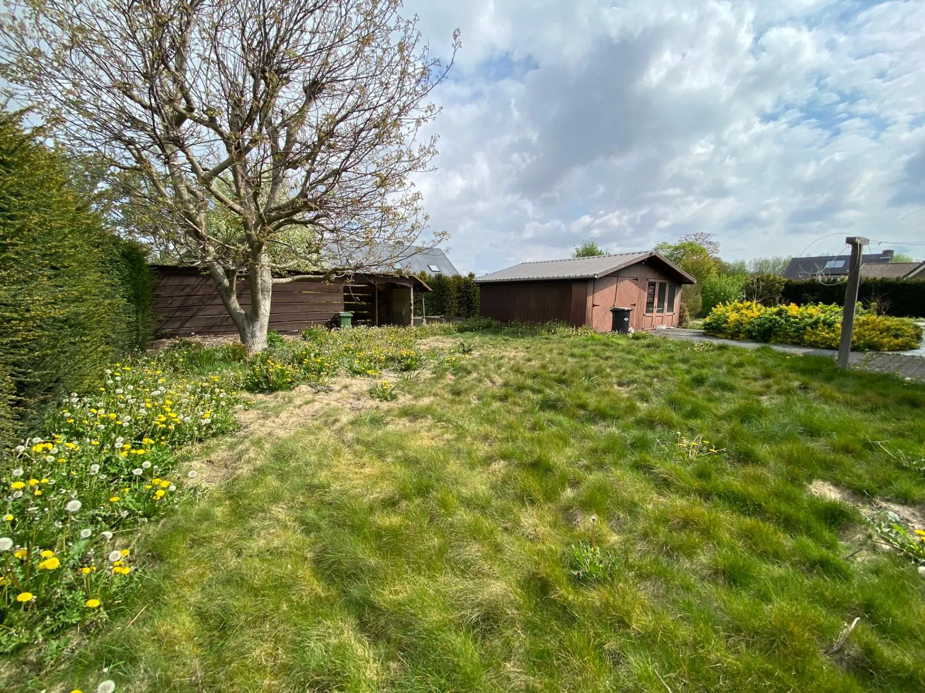 Op het gelijkvloers: inkomhal - afzonderlijk toilet - living - keuken - berging - badkamer - 1 slaapkamer - wasplaats - garage - terras - grote tuin - groot tuinhuis.