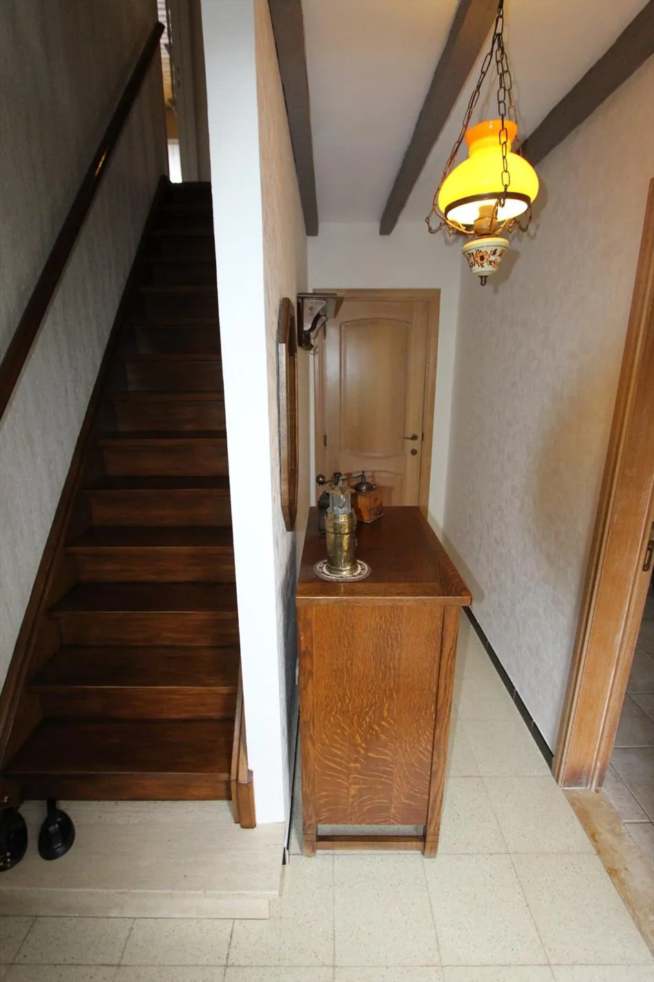 Deze rustig gelegen halfopen bebouwing is gelegen op een grondoppervlakte van 338 m² te Koekelare (De Mokker). Deze woning bestaat uit: inkomhal - toilet - living - keuken - veranda - wasplaats - berging - garage - terras - tuin - tuinhuis - nachthal - 3 slaapkamers - badkamer met ligbad en toilet - bureau met mogelijkheid ombouwen tot een 4de slaapkamer - zolder. Centrale verwarming aanwezig. Overal rolluiken aanwezig.