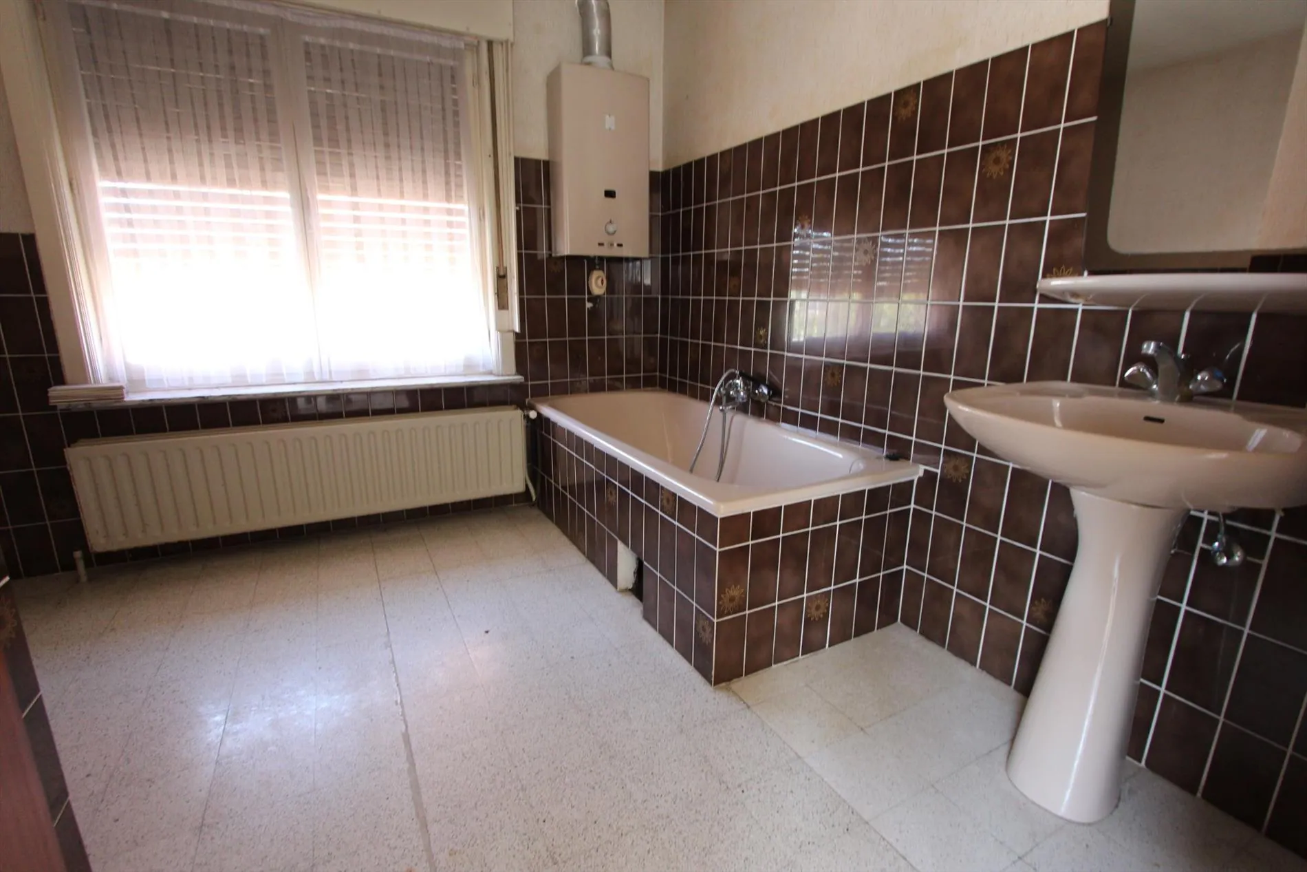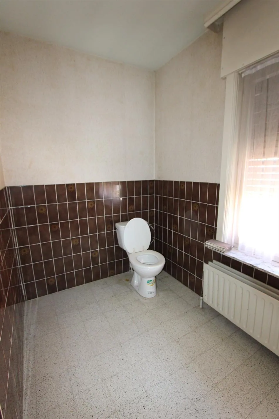 Deze woning is gelegen op een grondoppervlakte van 566 m² en bestaat uit: oprit - inkomhal - living - keuken - kelder - berging - wasplaats - toilet - terras - tuin - garage - nachthal - 3 slaapkamers - badkamer met ligbad en toilet - zolder. Cv op mazout.