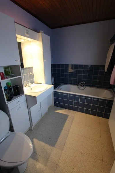 Halfopen bebouwing, gelegen in een rustige straat te Koekelare (De Mokker) en bestaande uit: inkomhal - afzonderlijk toilet - living (7m x 3,90) - keuken (3,90m x 2,40m) - berging - veranda - wasplaats - garage - terras - tuin - 2 tuinhuizen - badkamer met toilet - 3 slaapkamers (4,35x3,90 / 4,35x2,40 / 4,30 x 3,05) - zolder met vaste trap. KI 602 €, overal centrale verwarming. Attest goedgekeurde elektriciteit aanwezig.