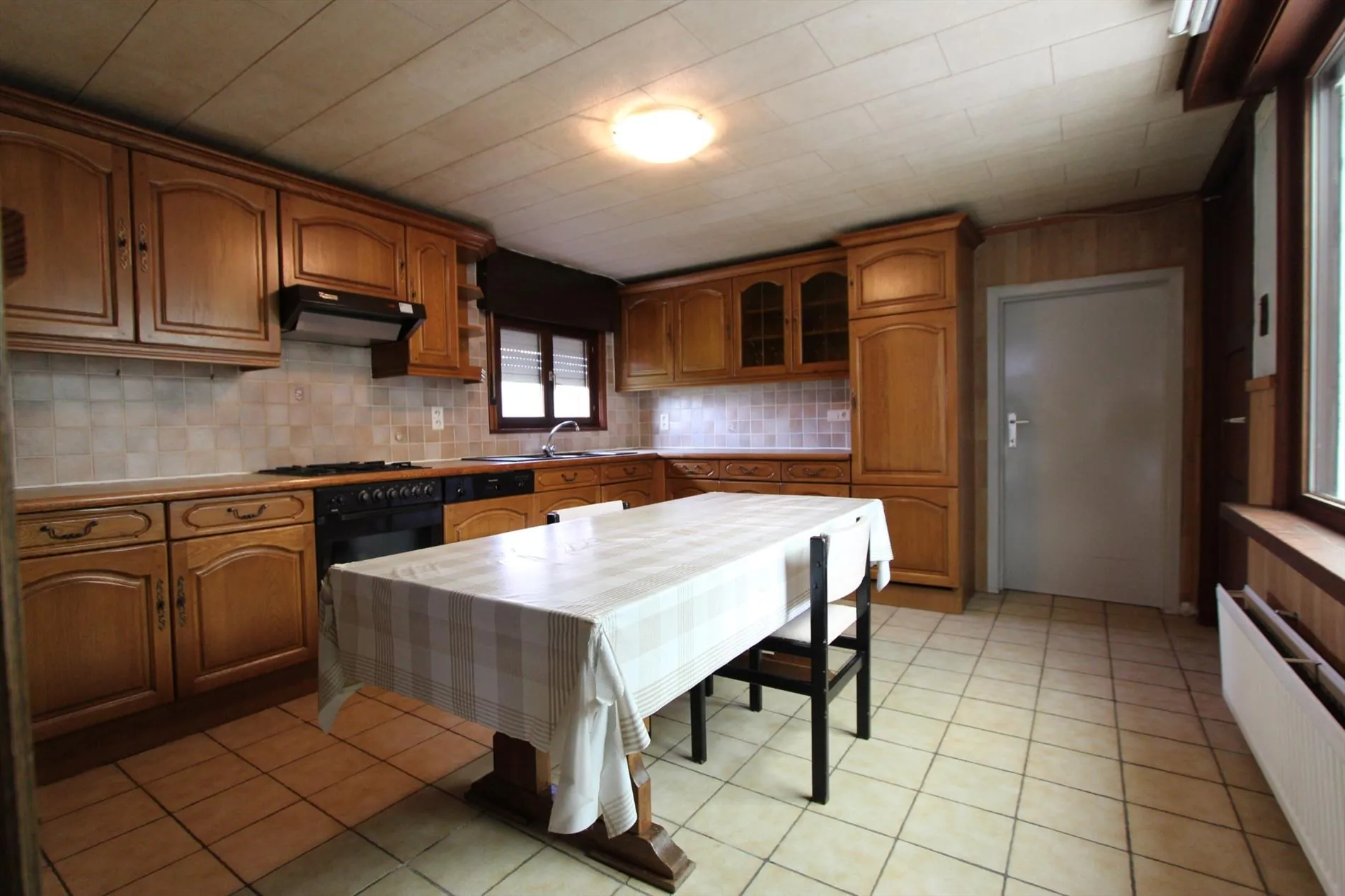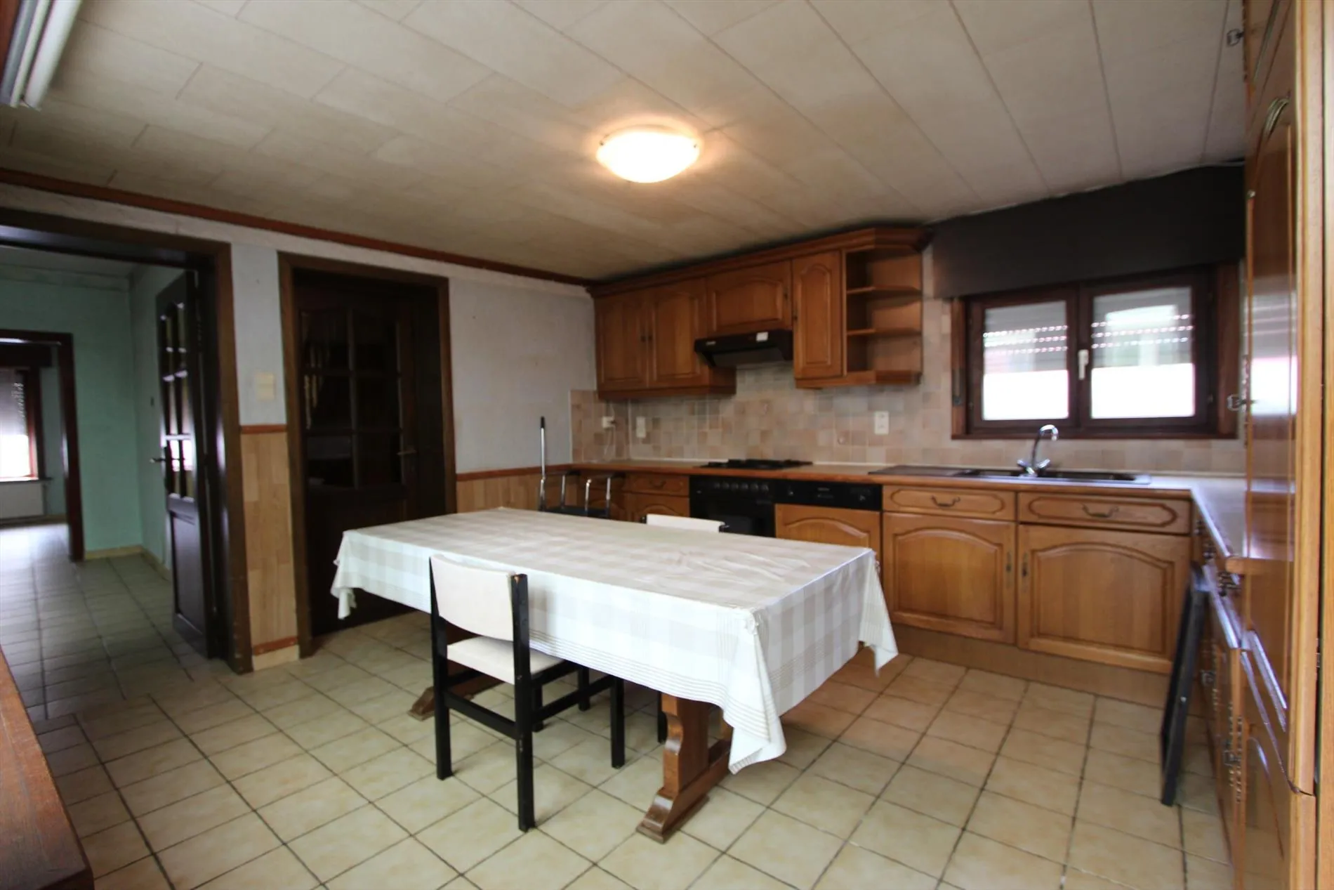 Deze woning heeft een grondoppervlakte van 833 m² en bestaat uit: inkomhal - living - keuken - veranda - bijkeuken/wasplaats - berging - kelder - toilet - 2 badkamers - nachthal - 5 slaapkamers - grote zolder - terras - grote tuin - grote gemetste berging - garage - oprit. Centrale verwarming op aardgas aanwezig.