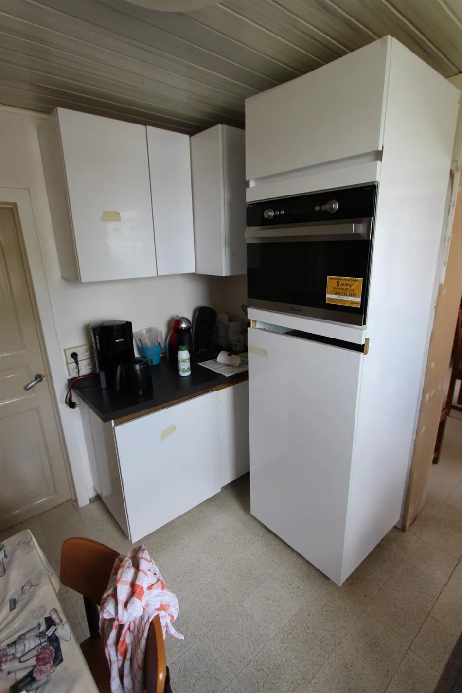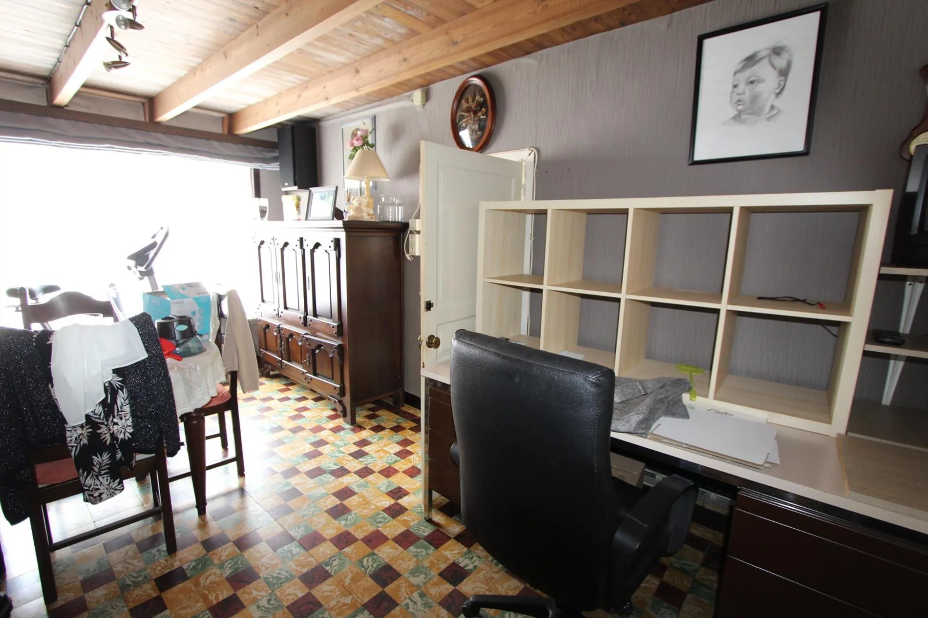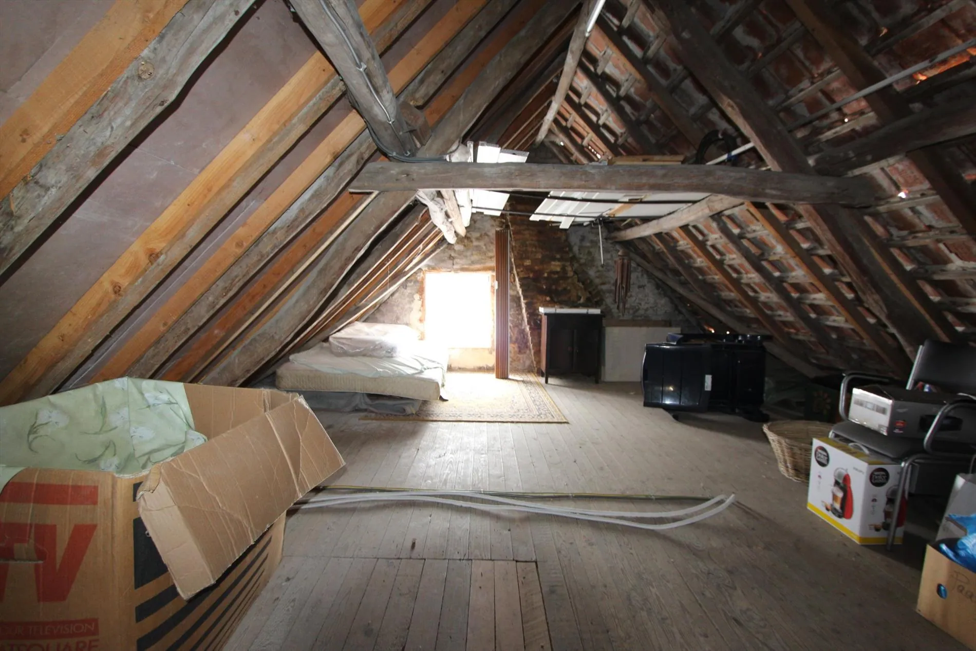 Deze woning is gelegen op een grondoppervlakte van 982 m² en bestaat uit: Living - keuken - berging - badkamer - toilet - 2de living - slaapkamer op het gelijkvloers - wasplaats - garage - terras - mooie diepe tuin - bijgebouwen - oprit voor 1 auto. Op verdiep 1: 2 slaapkamers - zolder. De grondoppervlakte bestaat uit 2 percelen, een perceel van 490 m² en een perceel van 492 m². Attest goedgekeurde elektriciteit aanwezig.