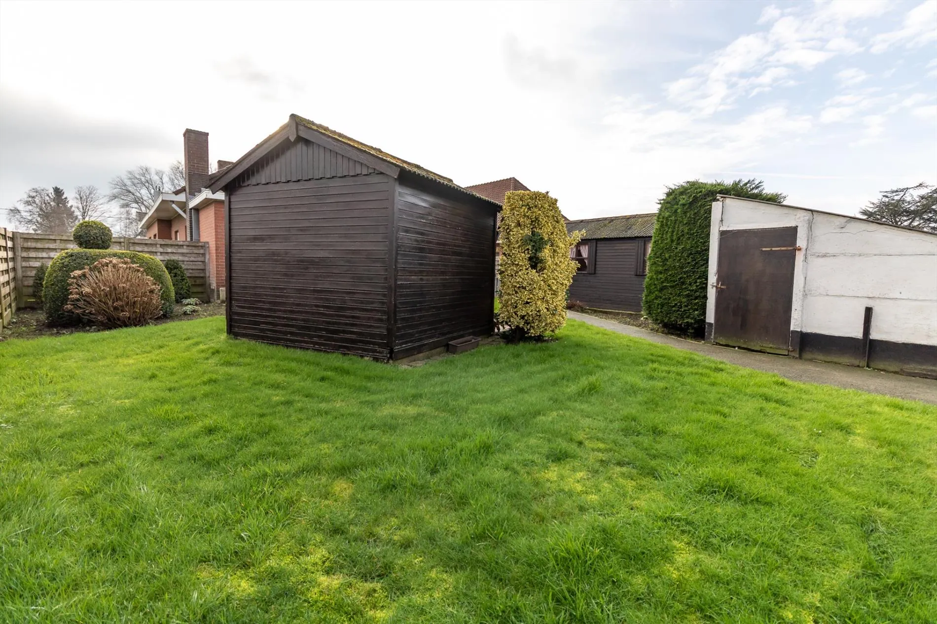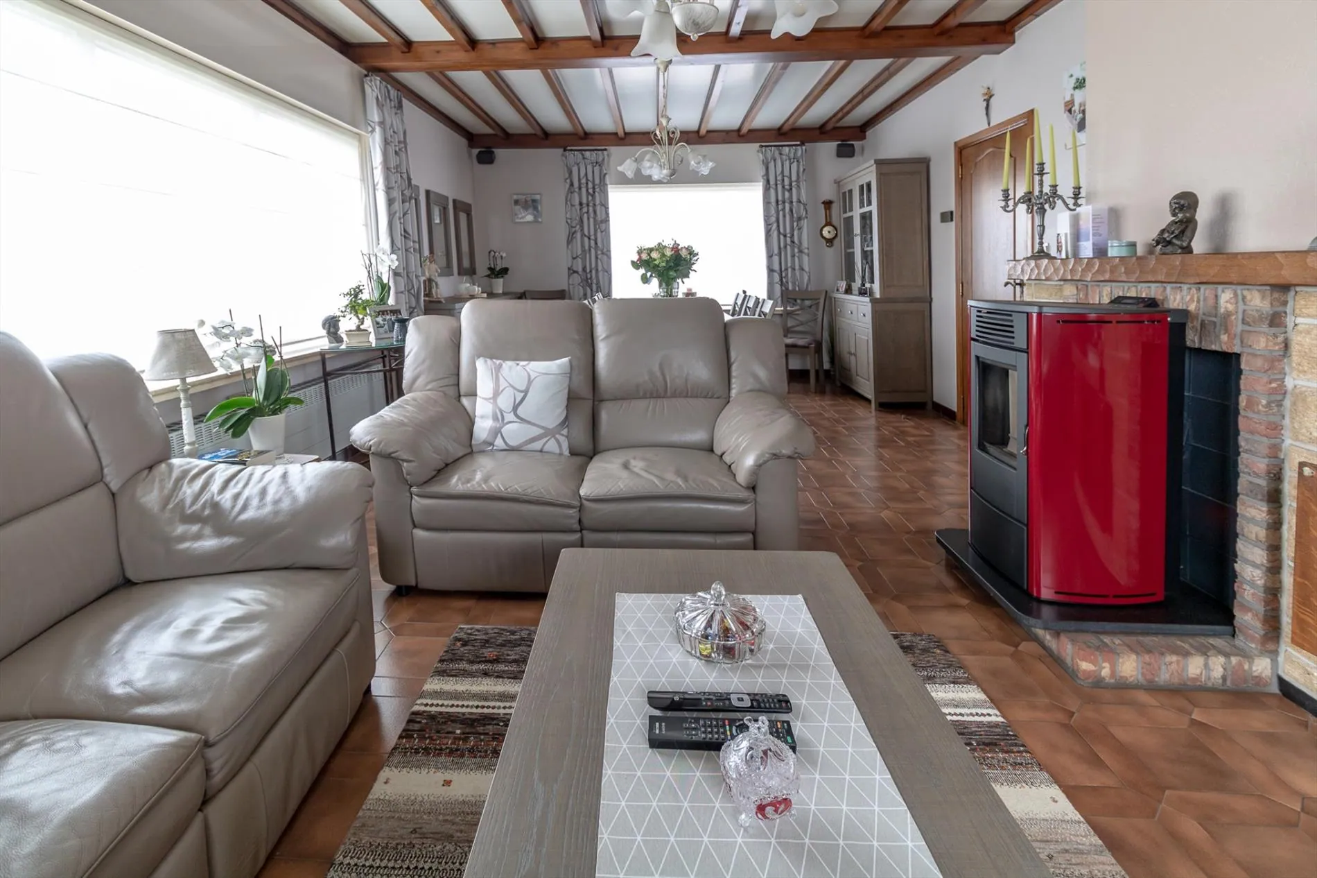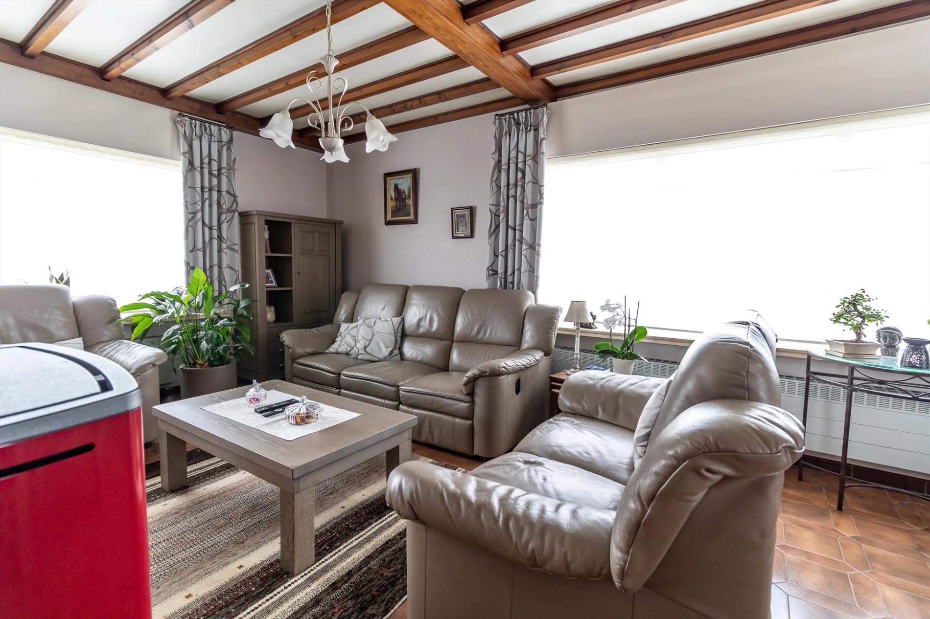 Deze instapklare alleenstaande woning is gelegen op een grondoppervlakte van 1008 m² en bestaat uit, op het gelijkvloers: oprit - inkomhal - gastentoilet - living - keuken - badkamer met douche - 3 slaapkamers - polyvalente ruimte - wasplaats -berging - garage - terras - tuinhuis - grote tuin. De woning is volledig overzolderd met mogelijkheid tot inrichten van extra slaapkamers. Deze woning is instapklaar. Centrale verwarming op aardgas.