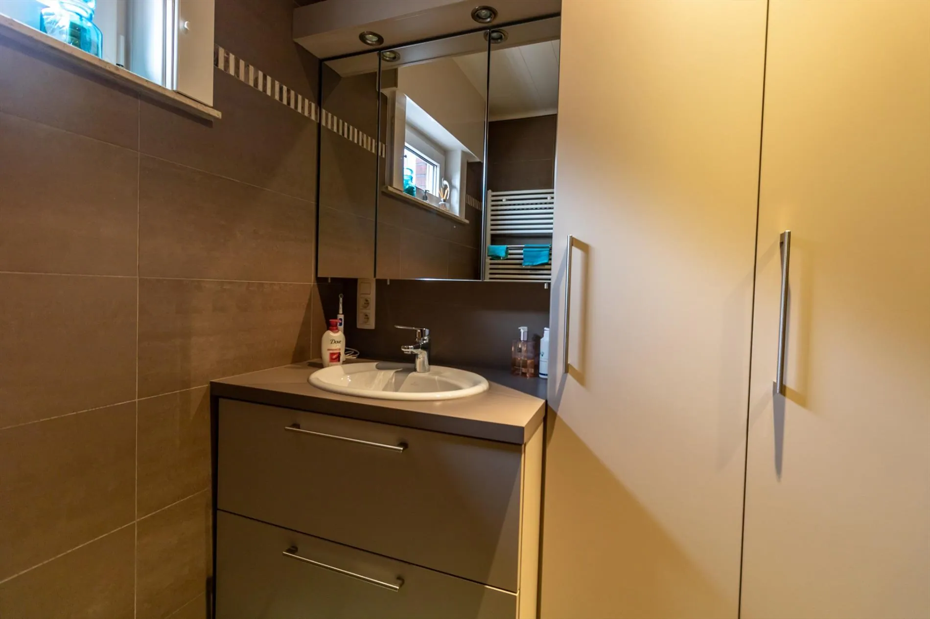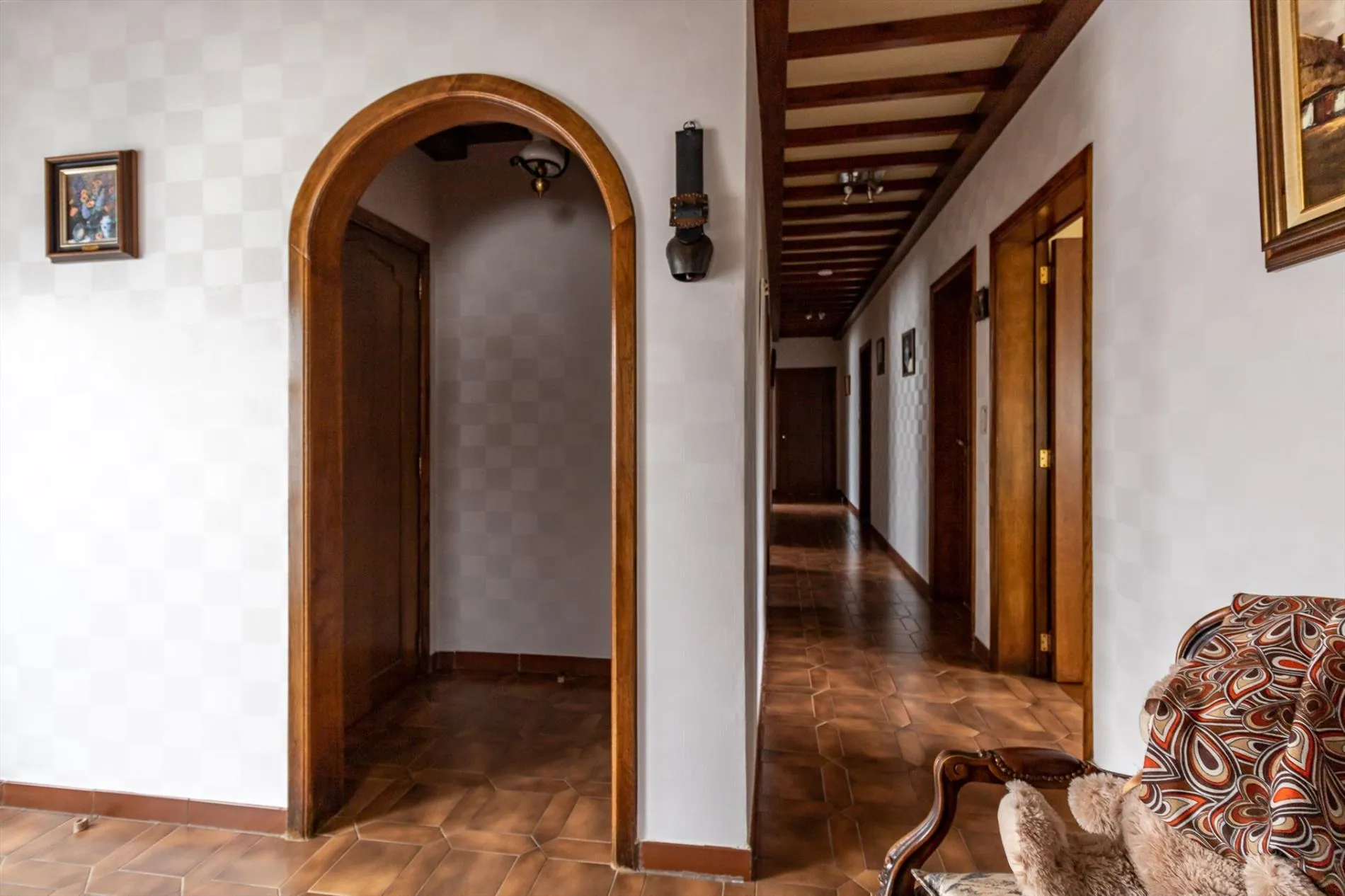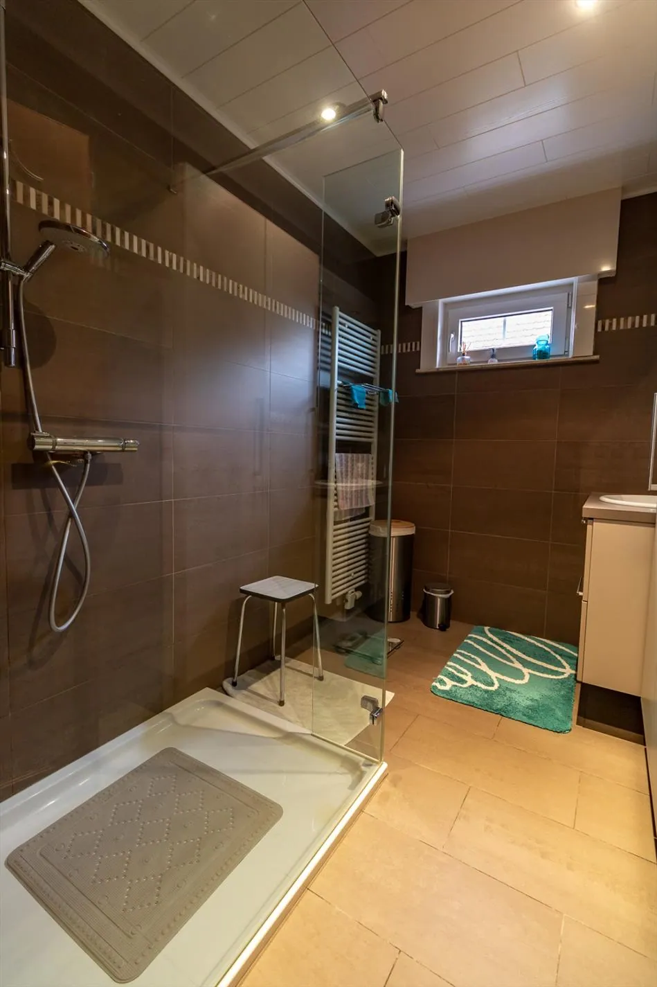 Deze instapklare alleenstaande woning is gelegen op een grondoppervlakte van 1008 m² en bestaat uit, op het gelijkvloers: oprit - inkomhal - gastentoilet - living - keuken - badkamer met douche - 3 slaapkamers - polyvalente ruimte - wasplaats -berging - garage - terras - tuinhuis - grote tuin. De woning is volledig overzolderd met mogelijkheid tot inrichten van extra slaapkamers. Deze woning is instapklaar. Centrale verwarming op aardgas.