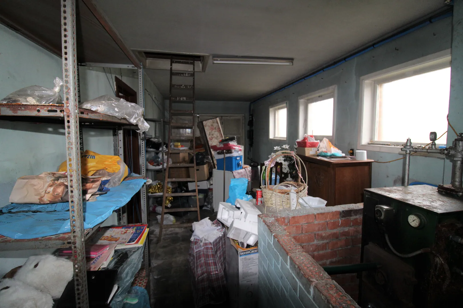 Op het gelijkvloers: voortuin met 2 oprijlanen - inkomhal - living - keuken - 3 slaapkamers - badkamer met bad en toilet - garage - veranda - meerdere werkruimtes - aparte dubbele garage (ideaal voor zelfstandigen). Via een trapladder is er toegang tot de ruime zolder.