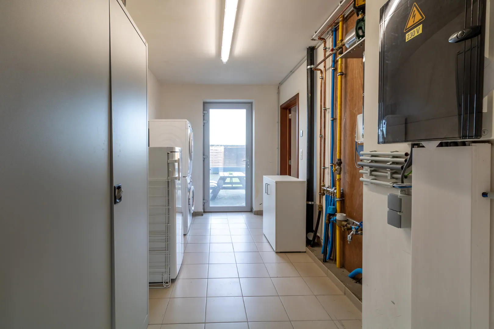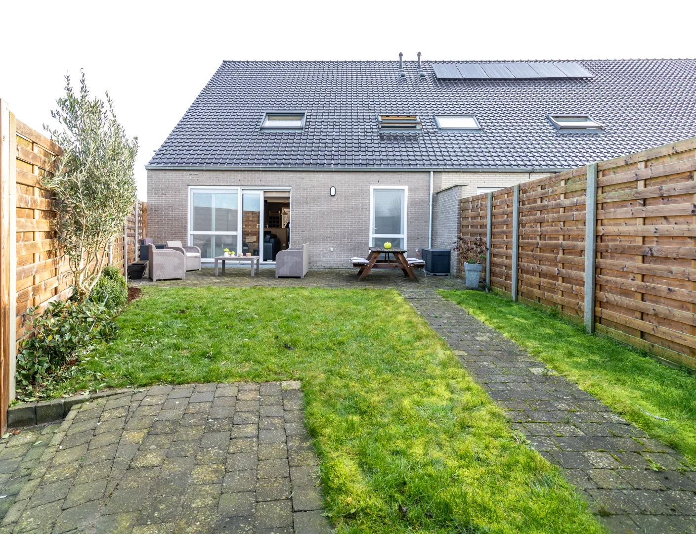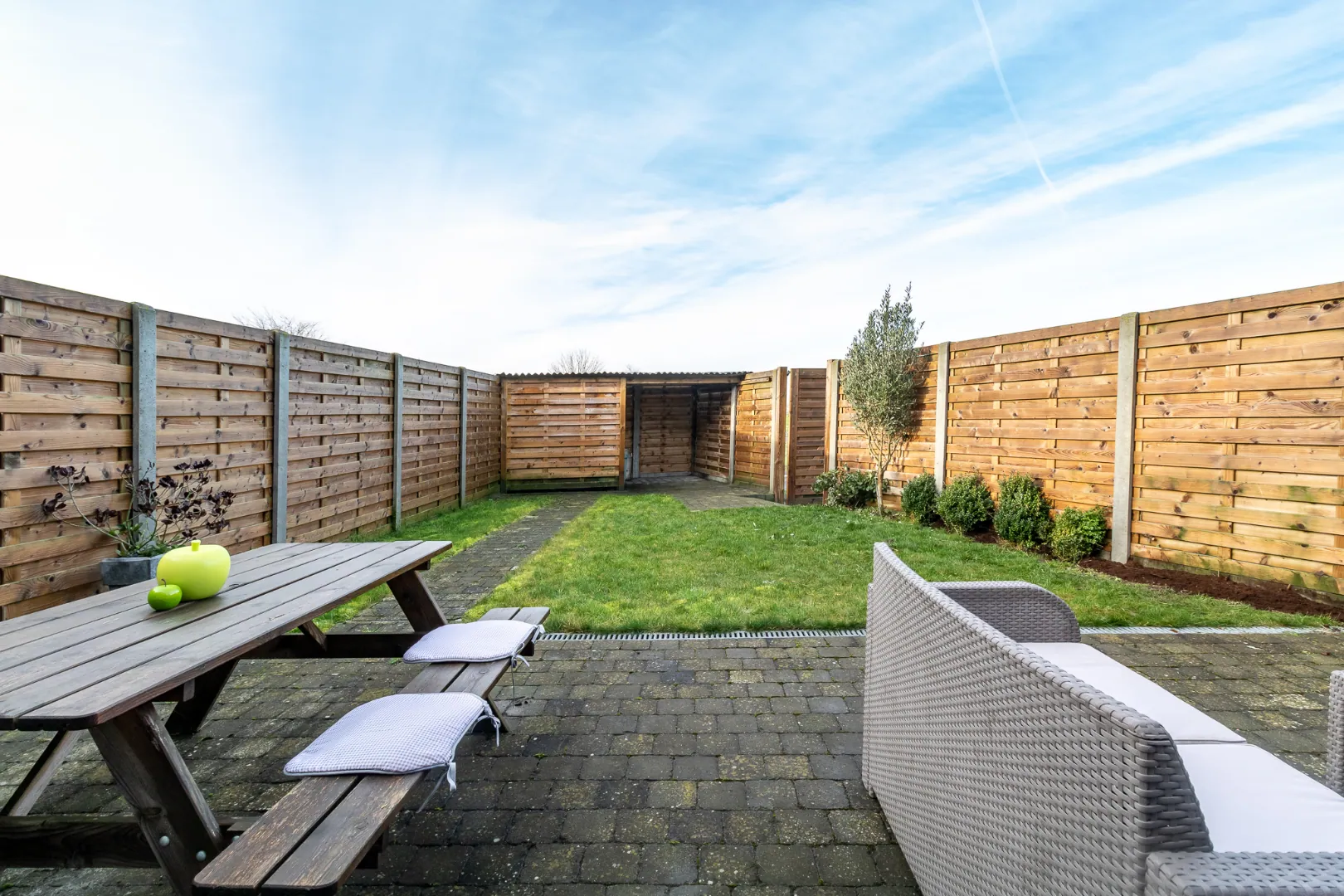 Aan de buitenzijde beschikt de woning over een ruime carport, de zonnig tuin is alsook toegangelijk langs de zijkant.