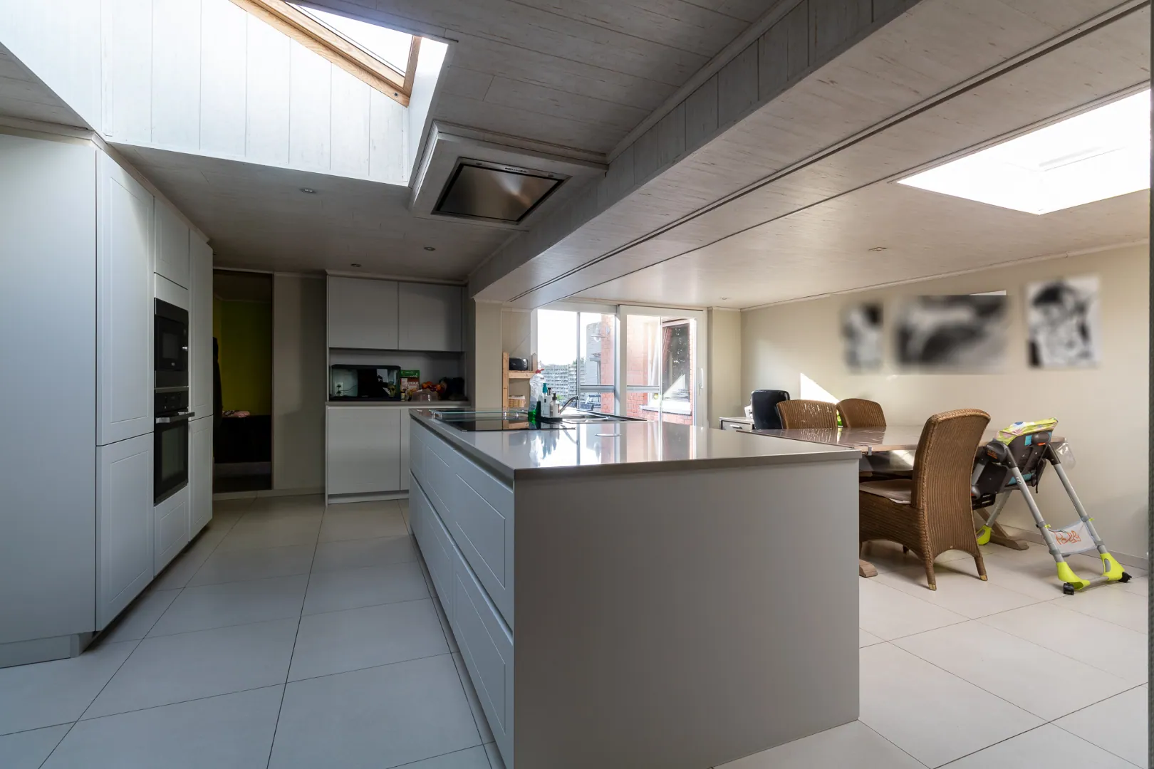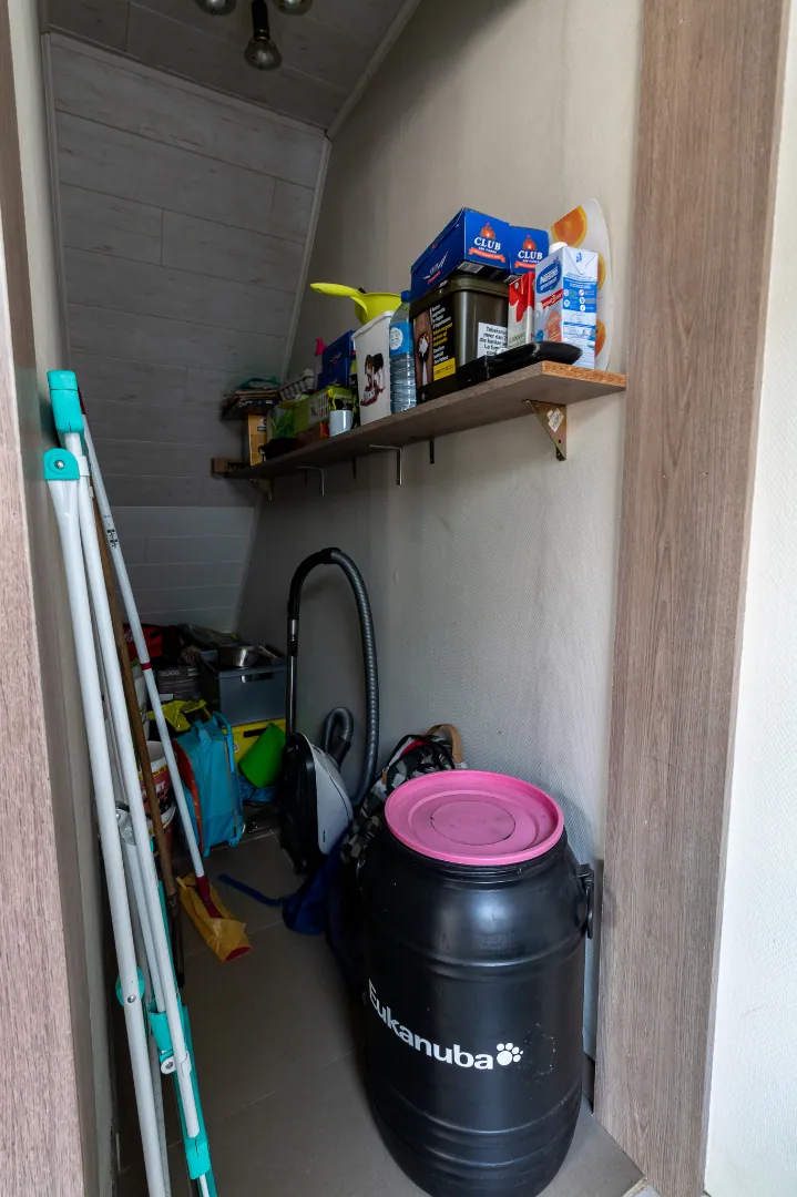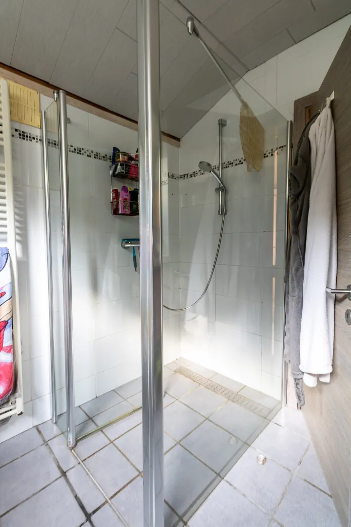 ingedeeld als volgt: inkomhal met trap - woonkamer - ruime moderne keuken - wasberging - badkamer - ruime garage met toegang tot de omheinde tuin. Eerste verdiep met 2 slaapkamers waarvan één met inloopkast . Tweede verdiep met masterbedroom.