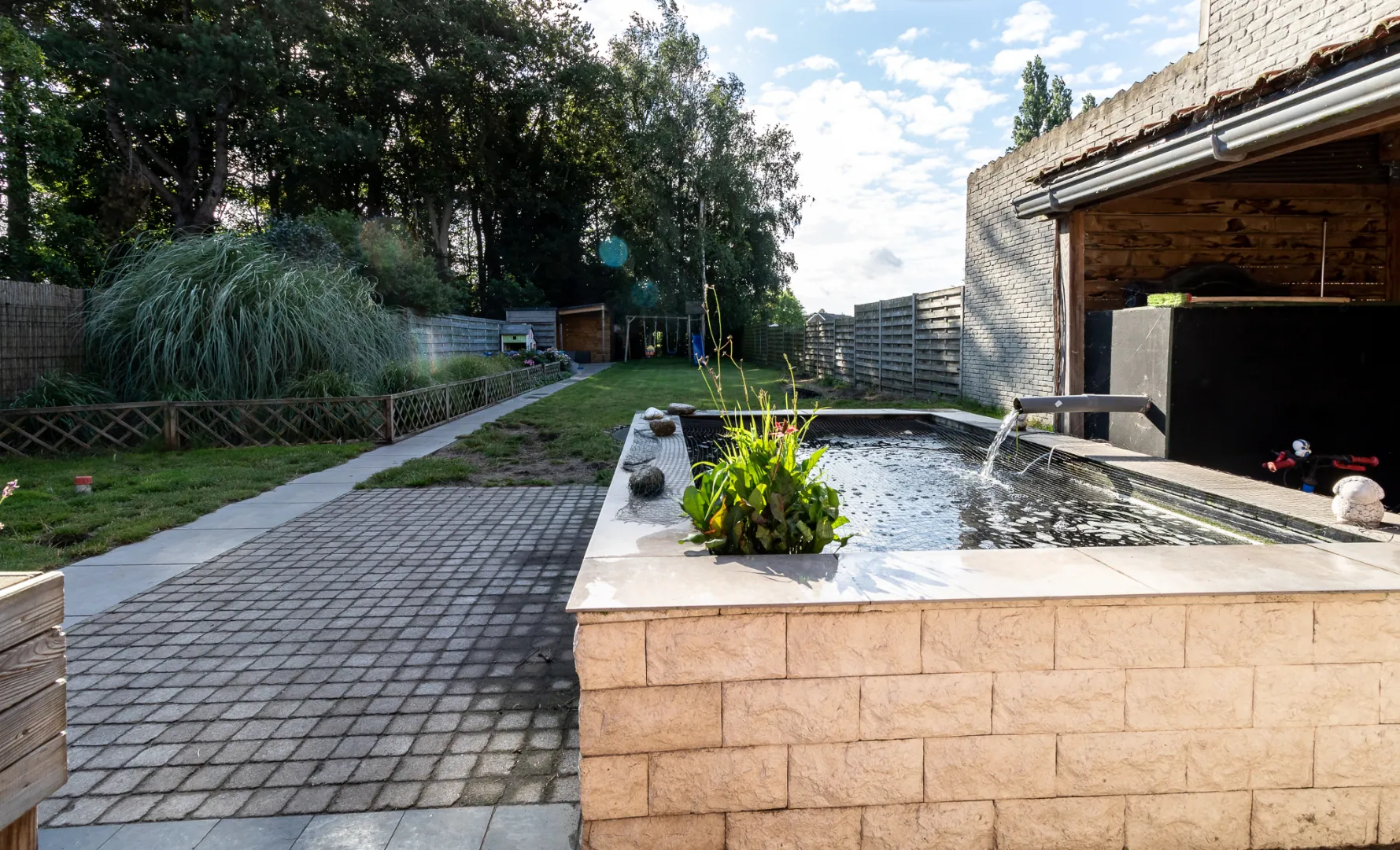 De woning beschikt over een ruime tuin aangelegd met vijver en overdekt terras. Voorzien van private boomgaard.