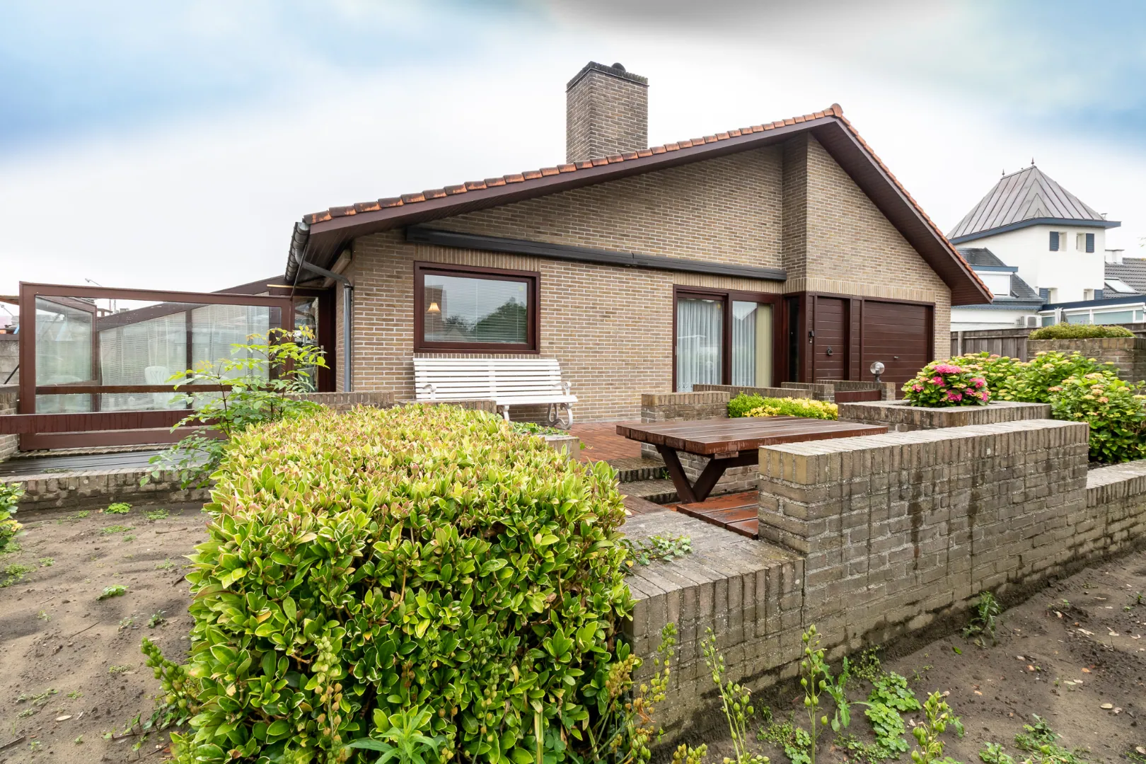 Rondom de woning bevindt zich een grote tuin met terras, alsook een ruime oprit die geschikt is voor meerdere wagens, bestelwagens,... .
