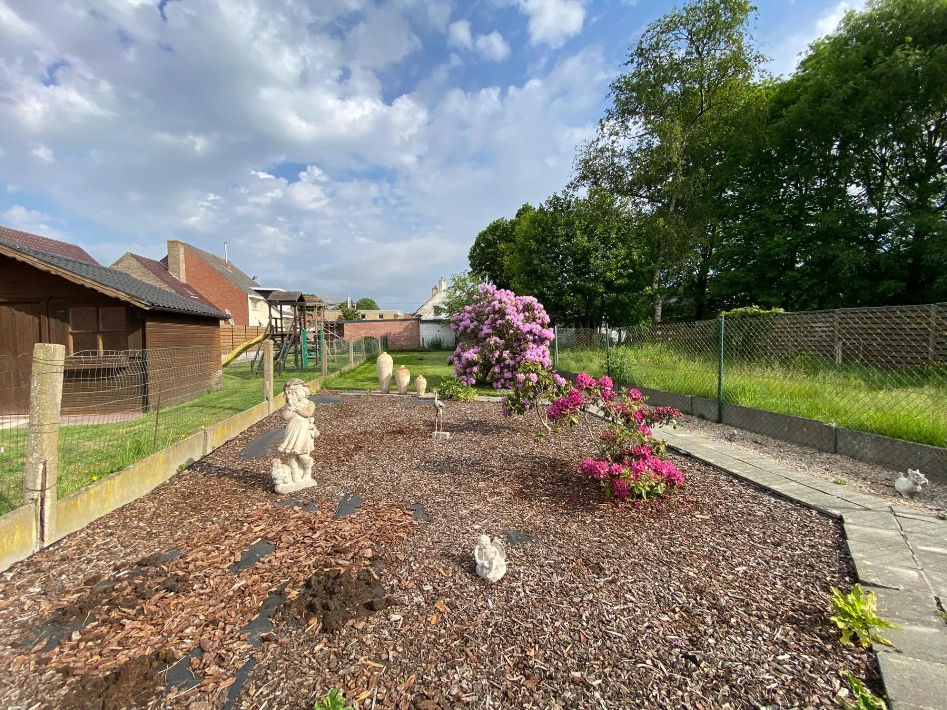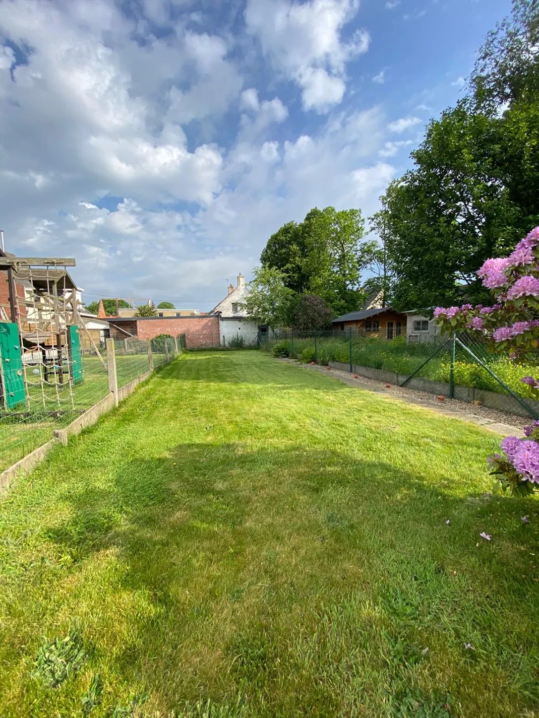 Deze woning is gelegen op een grondoppervlakte van 400 m² en bestaat uit: inkomhal - living - keuken - berging - toilet - badkamer met douche - wasplaats - terras - diepe tuin - garage met zoldering waar er een mogelijkheid is om een 3de slaapkamer in te richten - nachthal - 2 slaapkamers.
