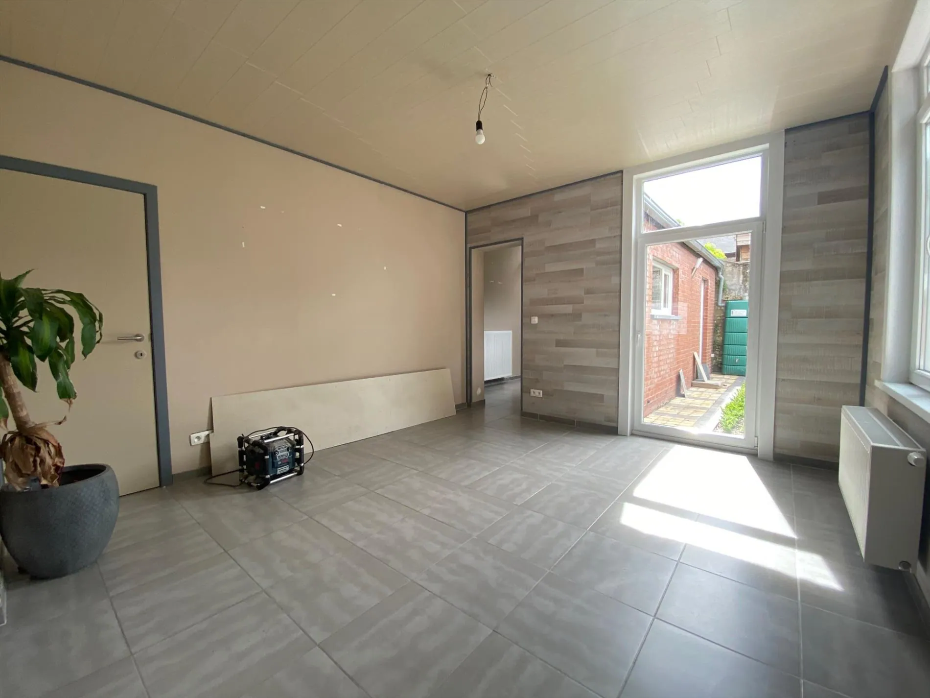 Deze gerenoveerde woning is instapklaar en bestaat uit: inkomhal - living - keuken - wasplaats - terras - tuin - toilet op het gelijkvloers - garage - 2 slaapkamers - bureauruimte - badkamer - toilet op 1ste verdieping.