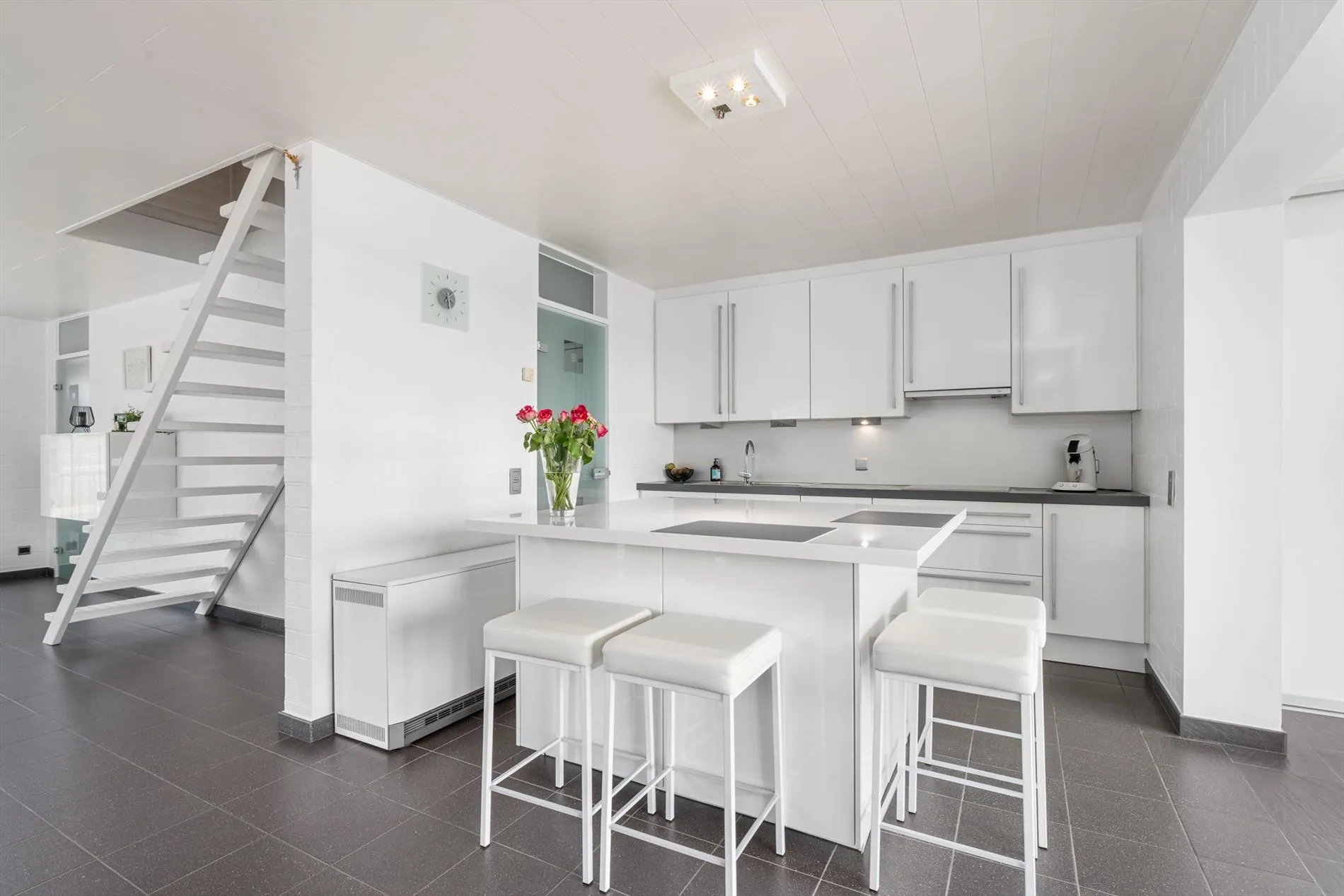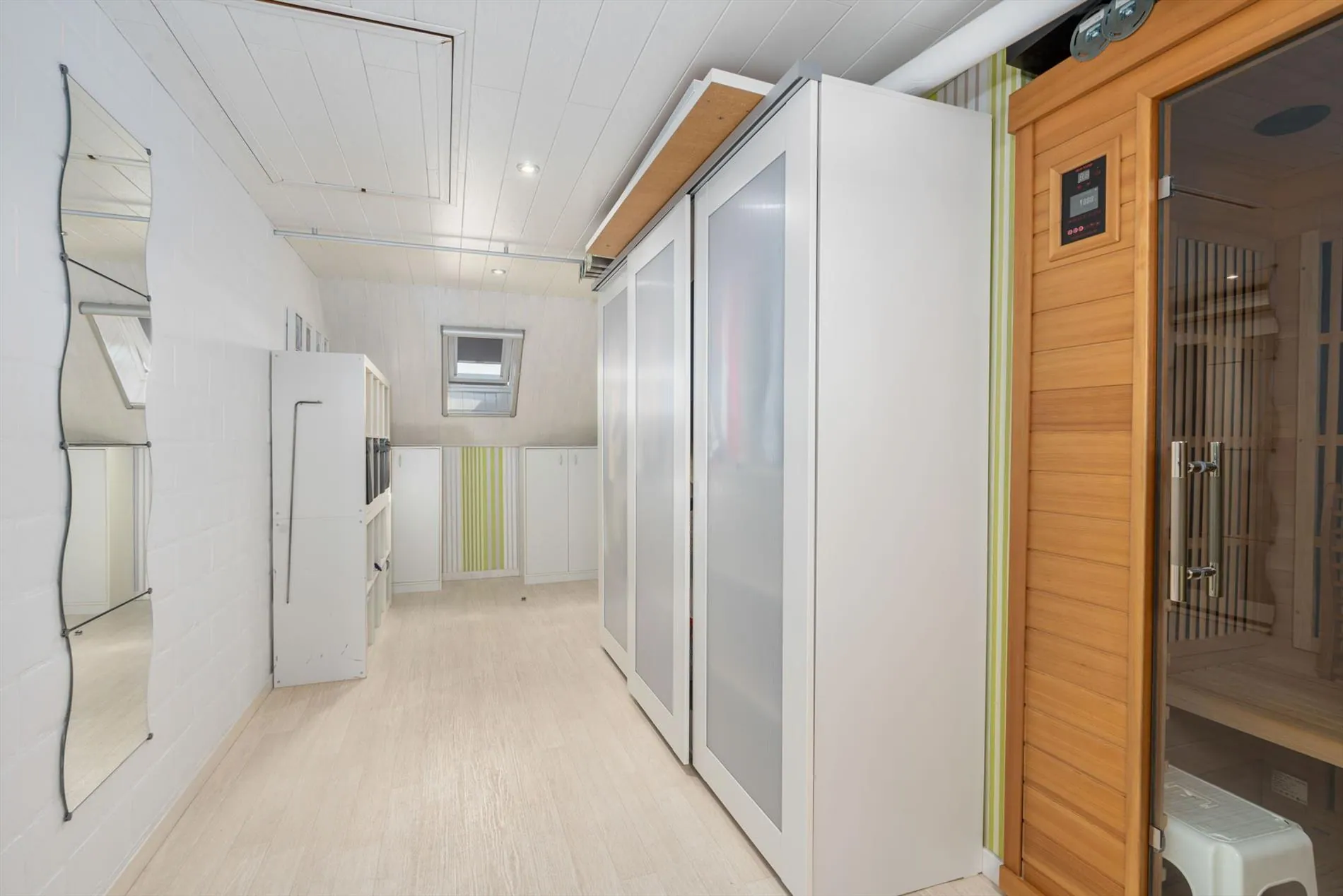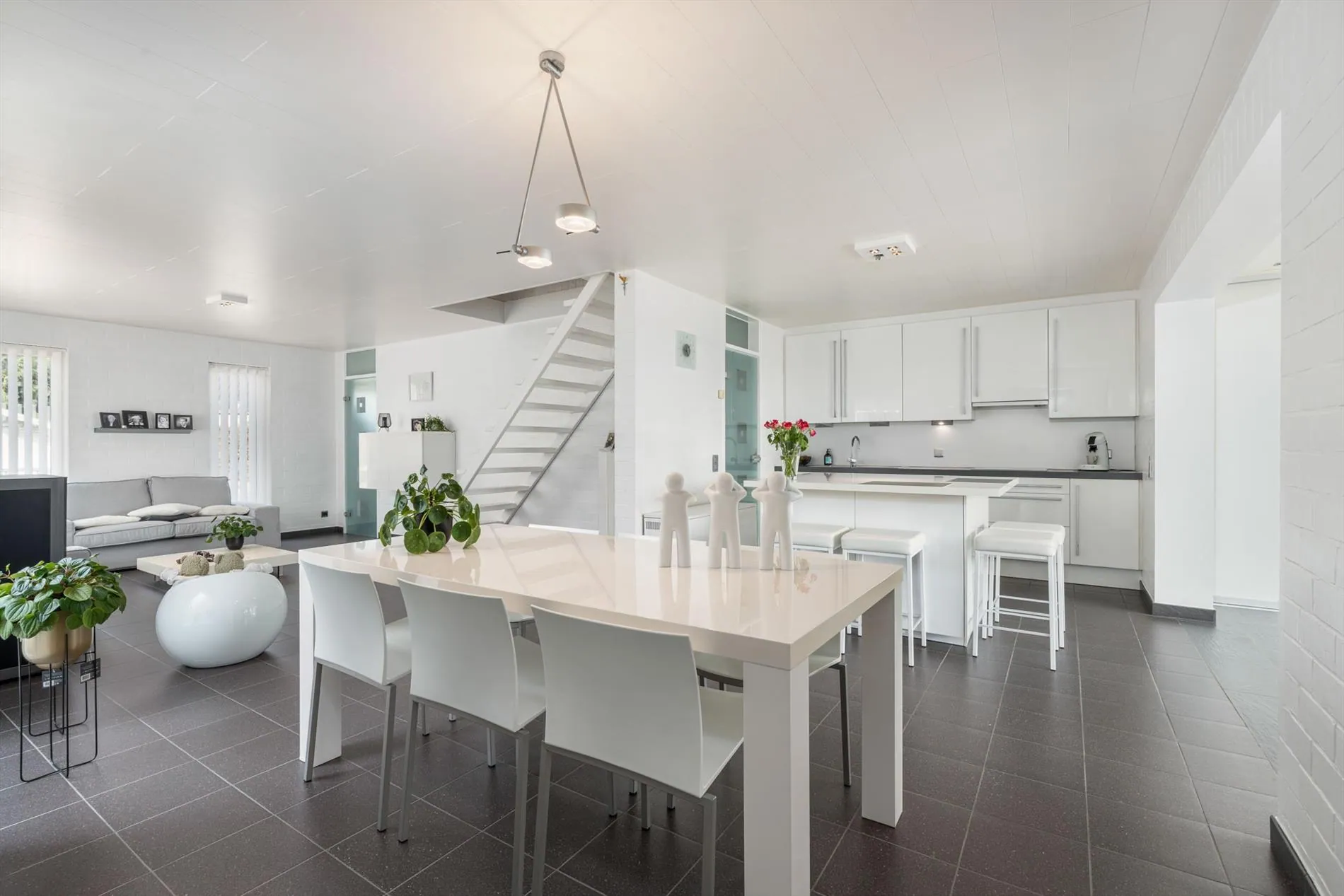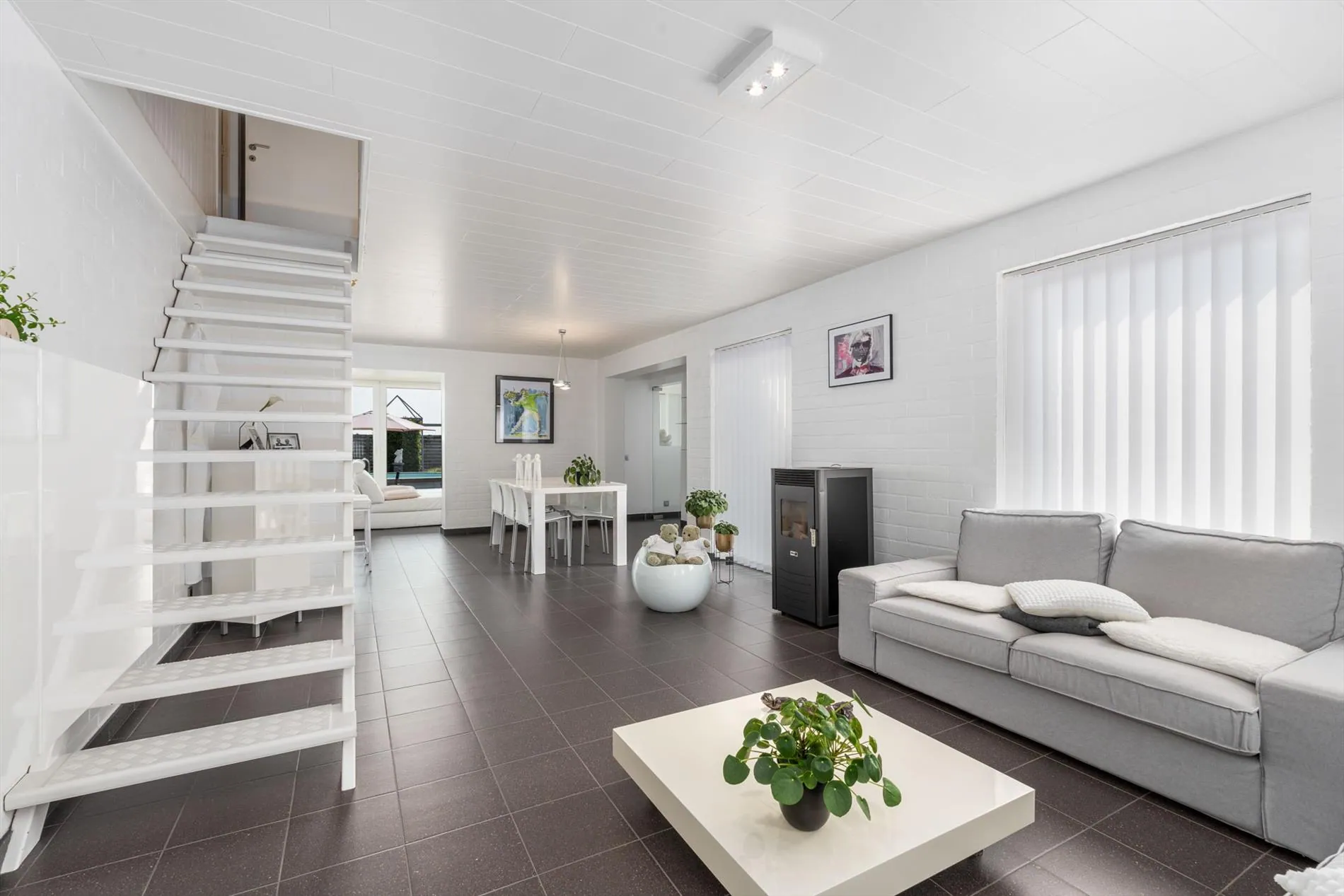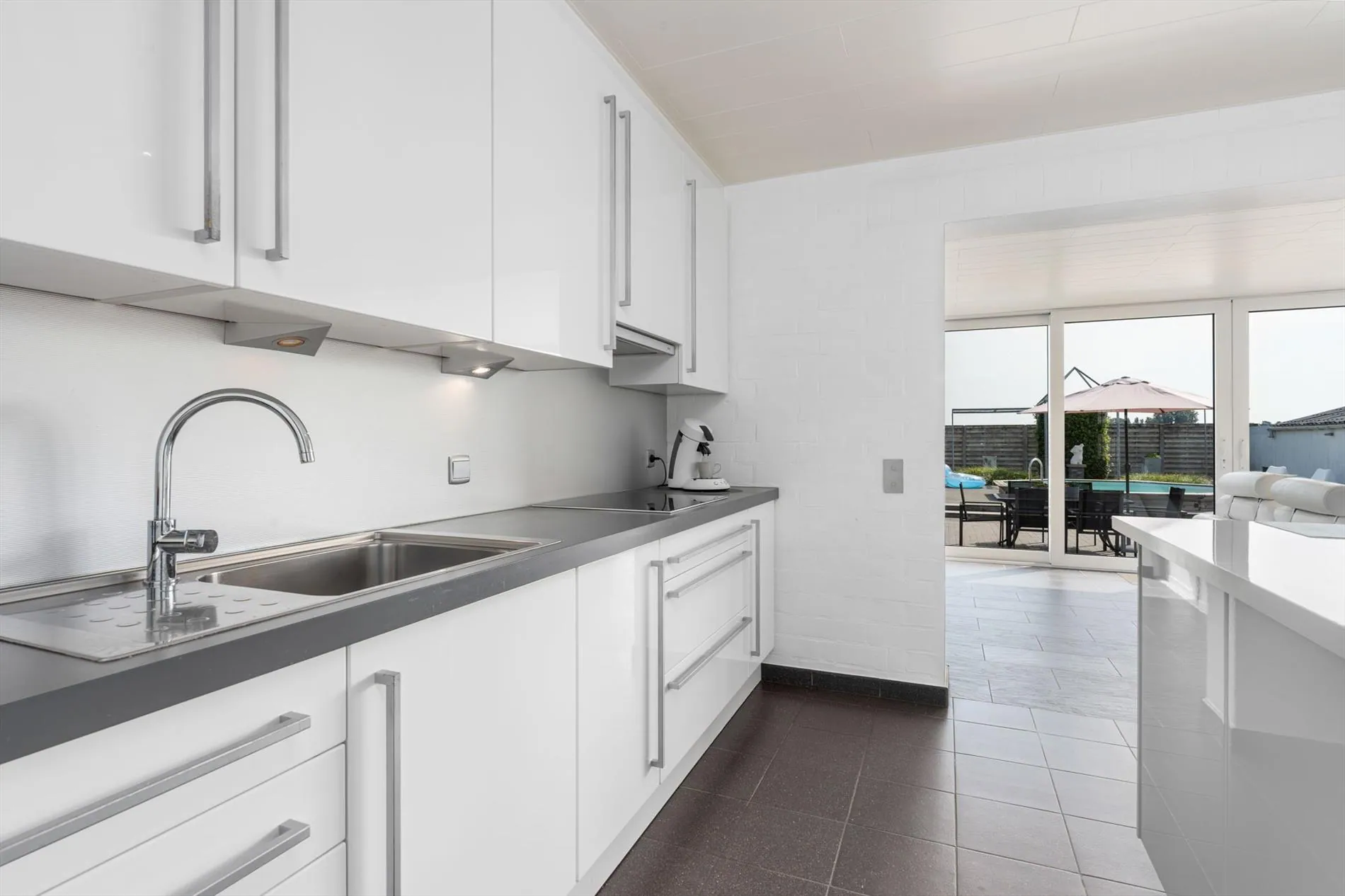 grote oprit - inkomhal met vestiaireruimte - toilet - living - grote keuken - berging - wasplaats - zitruimte met zicht op terras - grote garage - carport - terras - zwembad - 1 slaapkamer op het gelijkvloers met aansluitend een dressingruimte - nachthal - 2 slaapkamers - zolder.