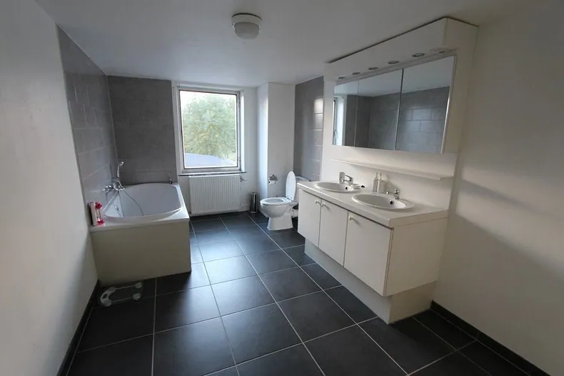 Het eerste verdiep voorziet 3 ruime slaapkamers en een badkamer met bad, toilet en dubbele lavabo.