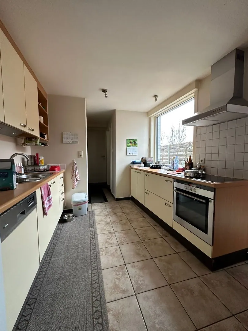 De woning heeft volgende indeling: via de ruime inkomhal heb je toegang tot een polyvalente ruimte, geschikt als bureauruimte of speelkamer. Daarnaast vindt u er de ruime woonkamer met aansluitend de open keuken. Het gelijkvloers beschikt alsook over een gastentoilet, douchekamer, wasplaats en een garage die dienst doet voor een kleine wagen.