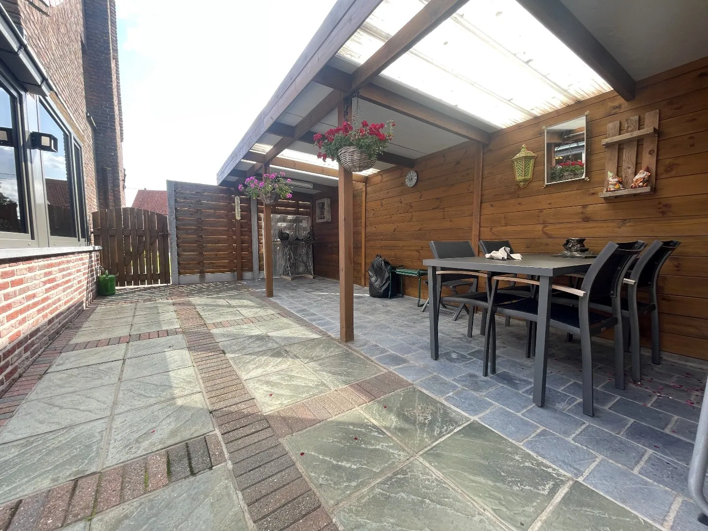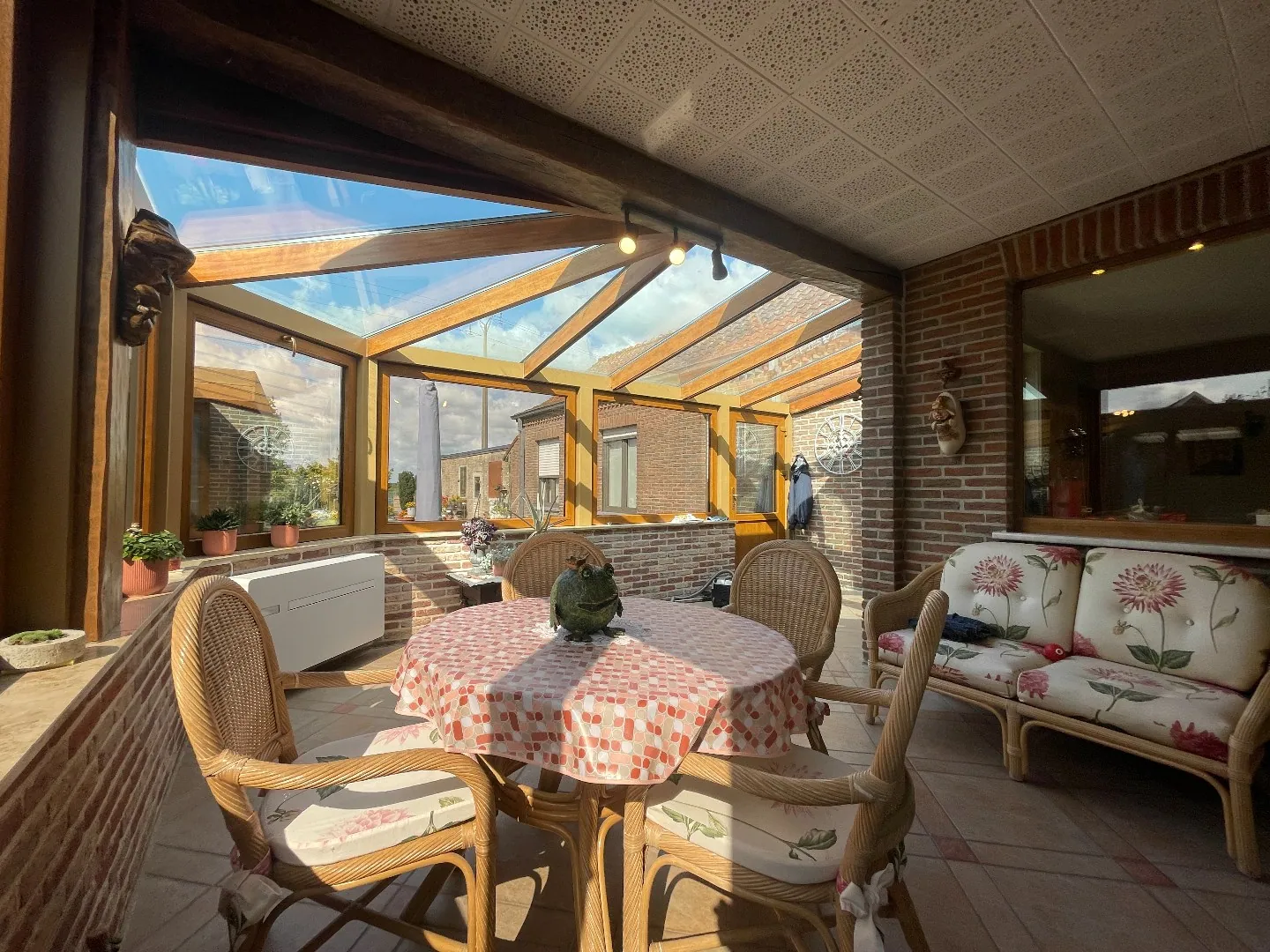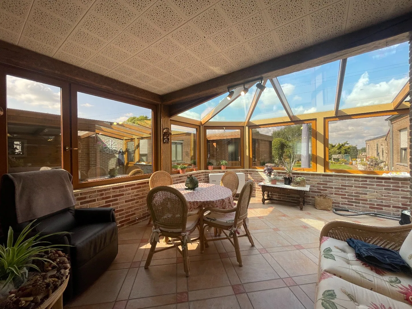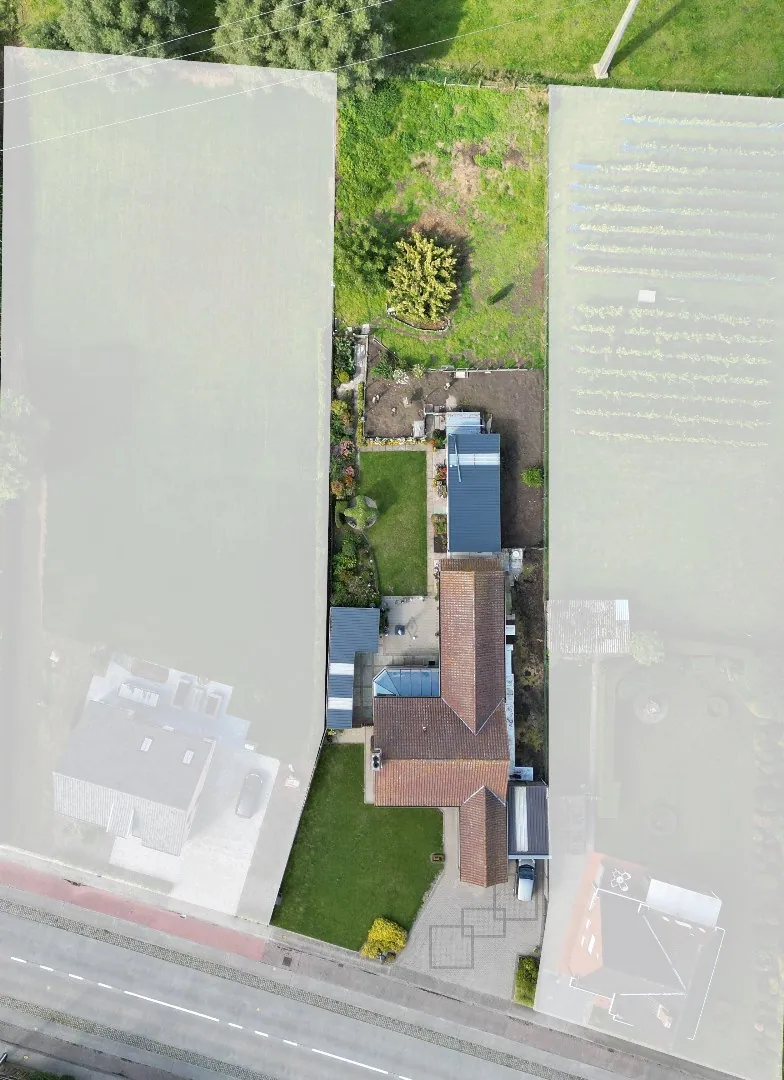 De indeling is als volgt: brede, grote oprit - voortuin - aparte garage - inkomhal - ruime living met zithoek - lichtrijke veranda - uitgeruste keuken - apart toilet - berging - badkamer met douche - nachthal - 3 ruime, volwaardige slaapkamers - zolderluik naar de zolder die loopt over de volledige woning - terras - overdekt terras - tuinhuis - tuin omgeven in het groen met 2 weides - extra tuinberging.