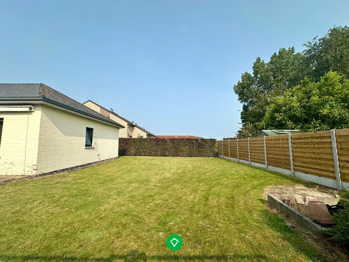 De woning is volledig omringd met kwalitatieve omheining en uitgerust met een aangelegde tuin en zonneterras.