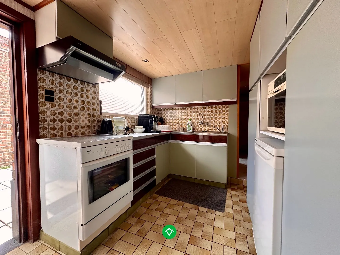 Bij het betreden van de woning komt u in een ruime inkomhal met berging, die toegang geeft tot de lichtrijke woonkamer. Vanuit de woonkamer bereikt u de keuken, die via een achterdeur toegang biedt tot de tuin. Achter de keuken bevinden zich de badkamer en een berging/kelder.