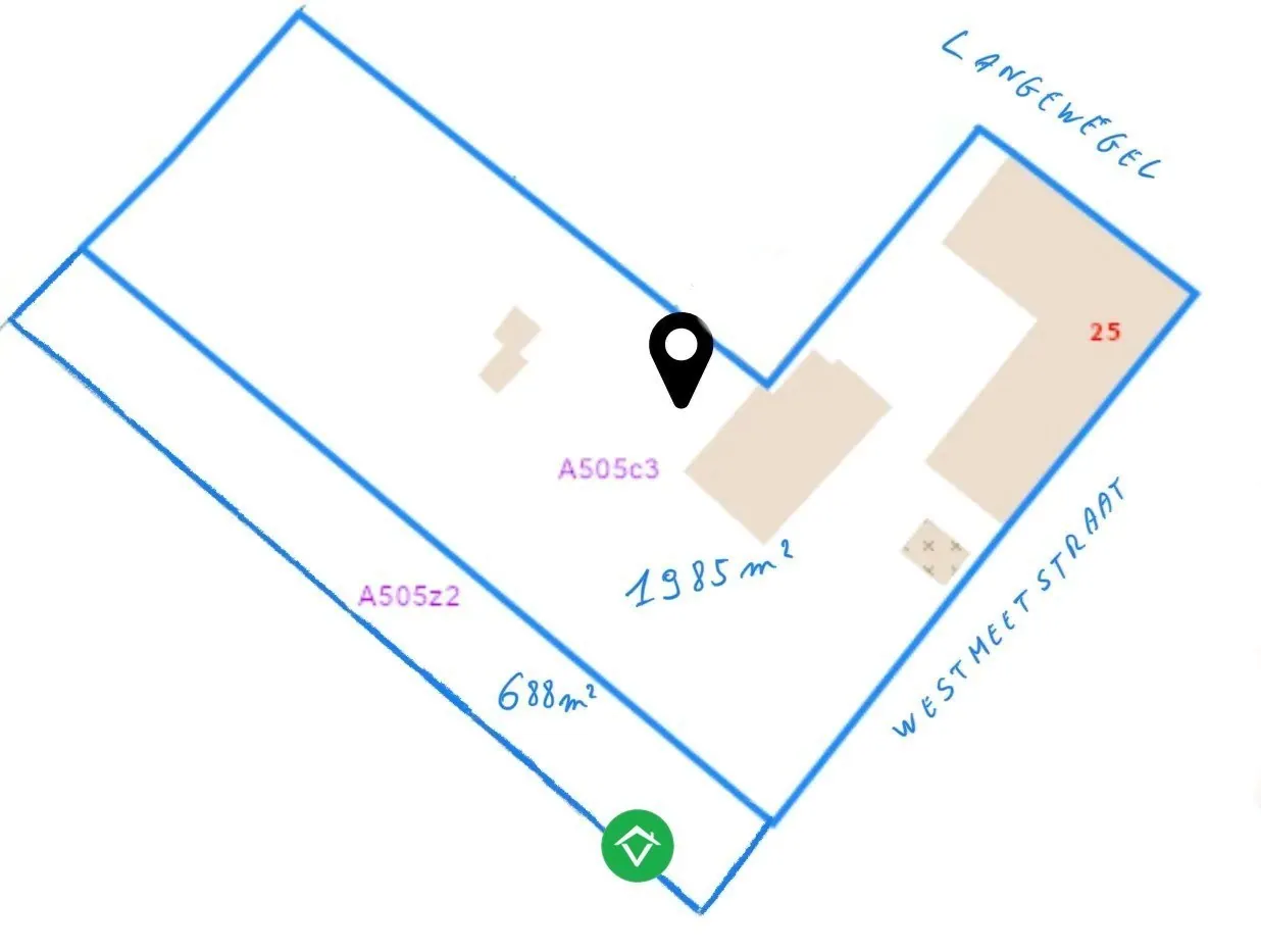 Inkomhal - living - keuken - kelder - toilet - wasplaats - berging - badkamer - terras - tuin - 5 slaapkamers - zolder - winkelruimte op het gelijkvloers - winkelruimte op verdiep 1 - 3 garages met zoldering - naastliggend stuk bouwgrond met verschillende mogelijkheden voor projectontwikkeling.