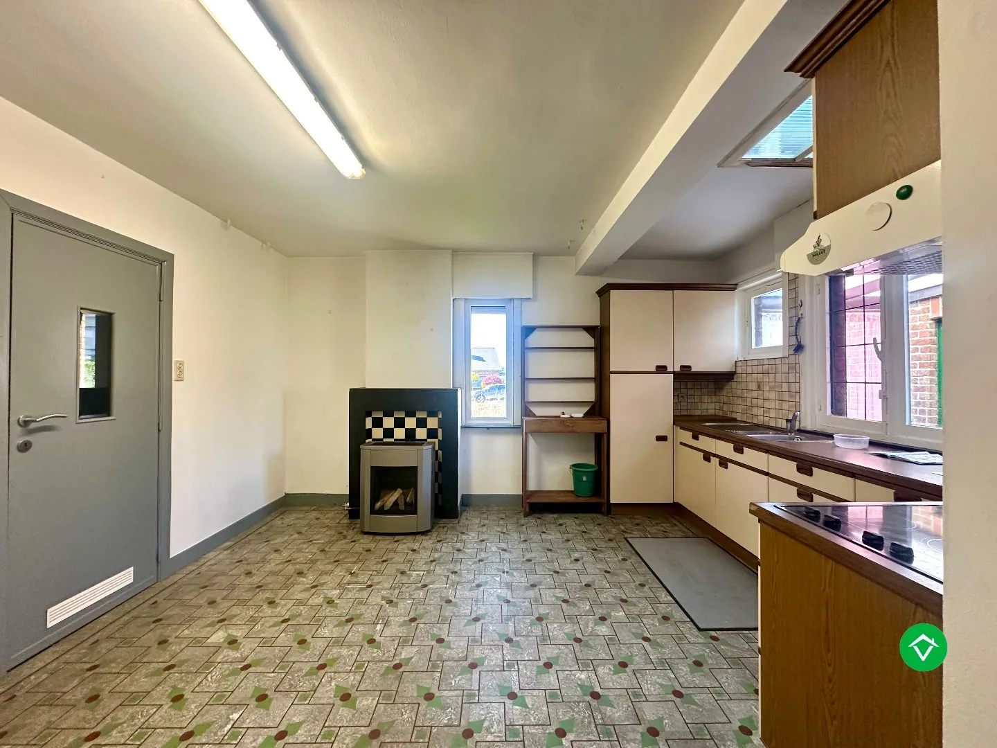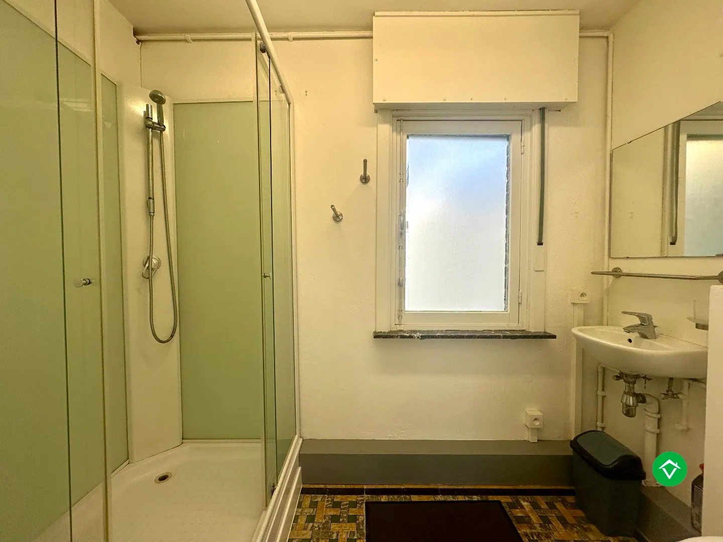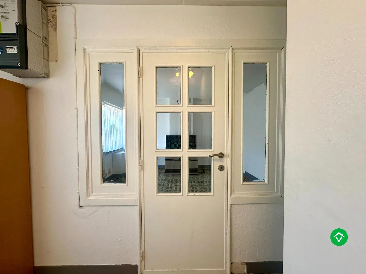 U komt binnen in een gezellige voorplaats die dienst kan doen als woon- of eetkamer. Aansluitend bevindt zich een tweede leefruimte met toegang tot de badkamer, uitgerust met een douchecabine, lavabomeubel en toilet. Achteraan ligt de keuken met zicht op de veranda en tuin, en ruimte voor een eettafel.