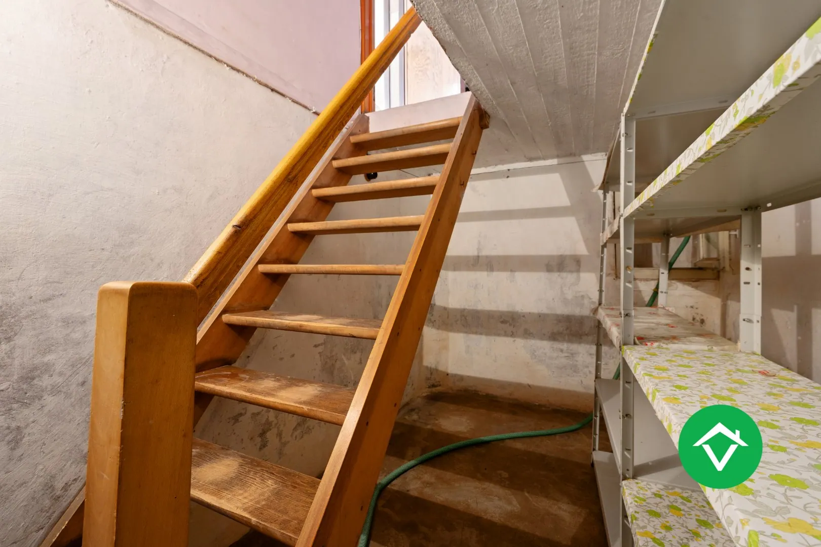 Indeling van de woning: inkomhal - living - keuken - kelder - berging - toilet - badkamer - nachthal - 3 slaapkamers - vaste trap naar de zolder met mogelijkheid tot inrichten van extra slaapkamers - terras - garage - diverse opbergruimtes - grote tuin. Ideaal voor een dierenliefhebber.