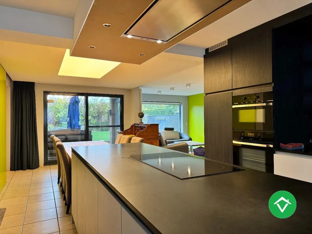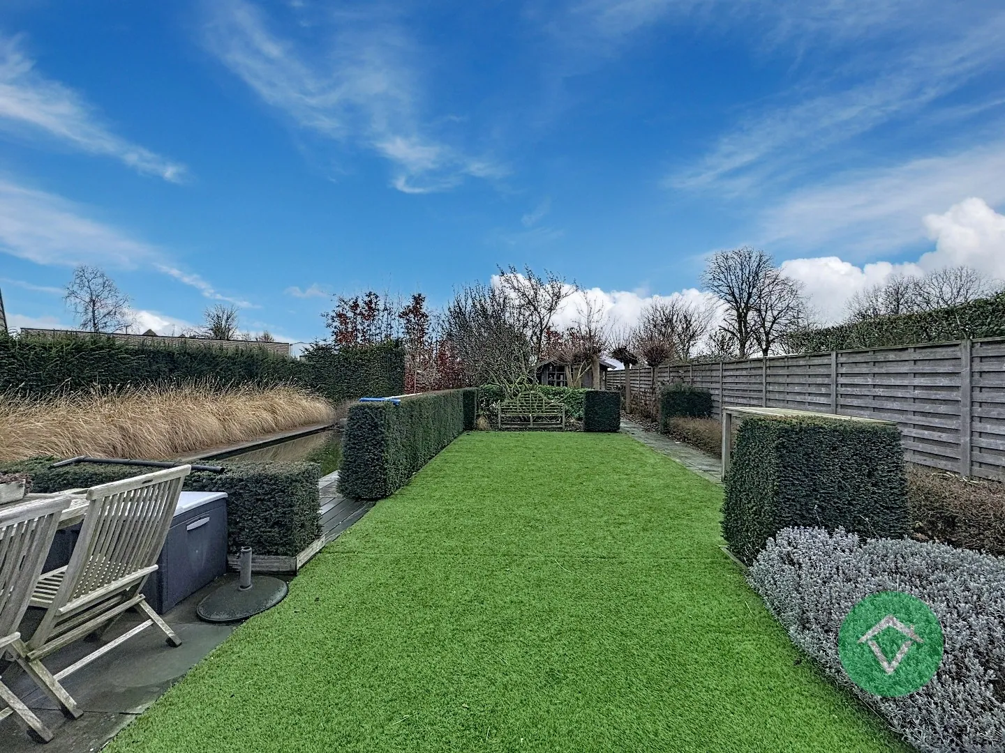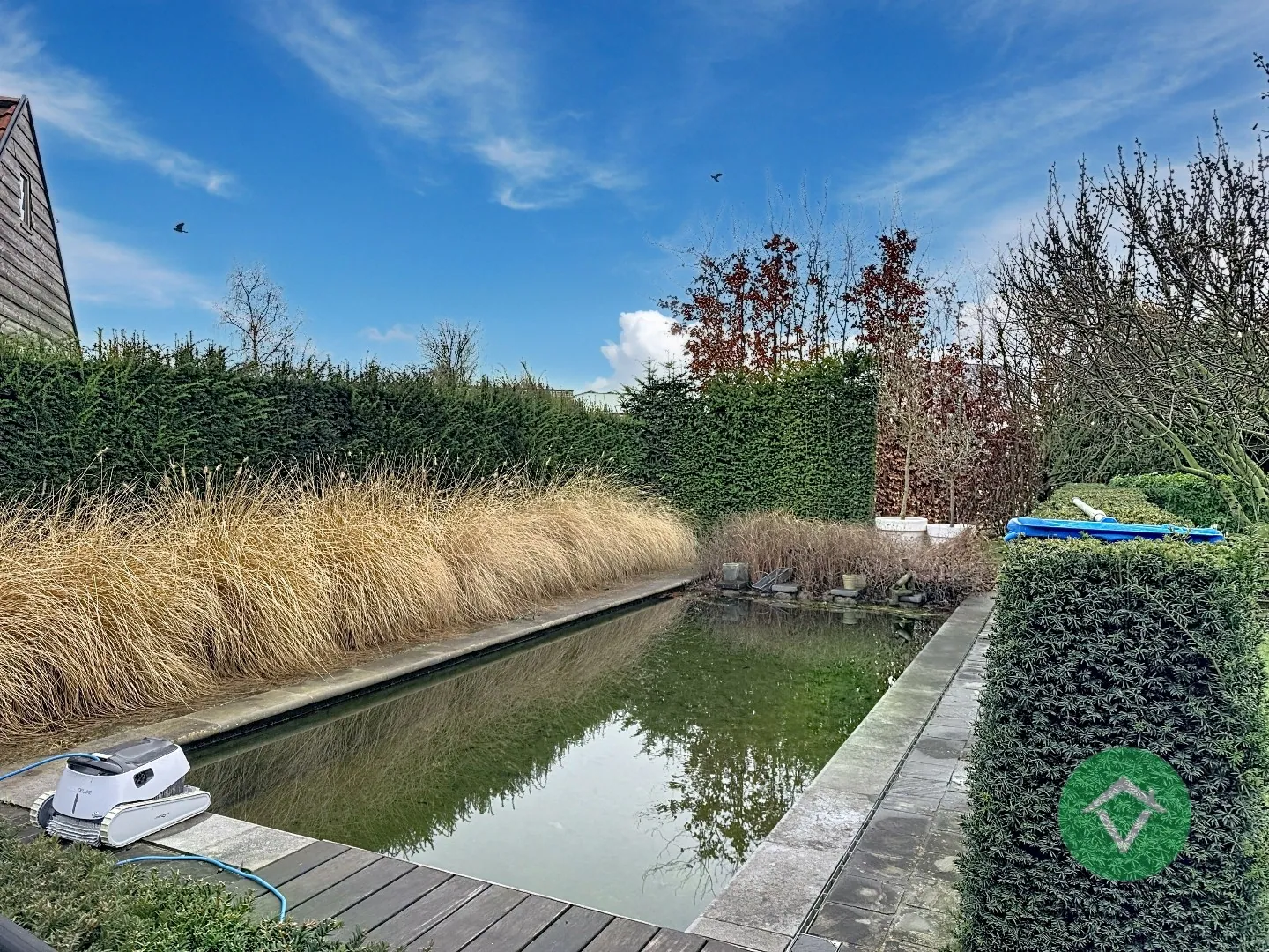 De woning bestaat uit: inkomhal - toilet - ruime living met zicht op de tuin - ingerichte keuken - grote bureau met zicht op de tuin - 2 garages - berging - wasplaats - terras - tuin - zwemvijver - tuinhuis - nachthal - 4 slaapkamers - badkamer - toilet op de bovenverdieping - zolder.