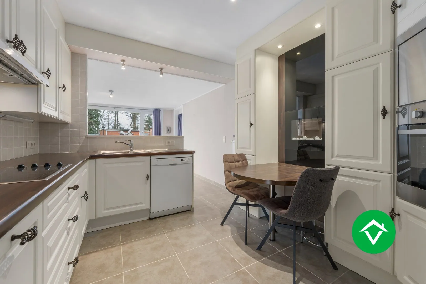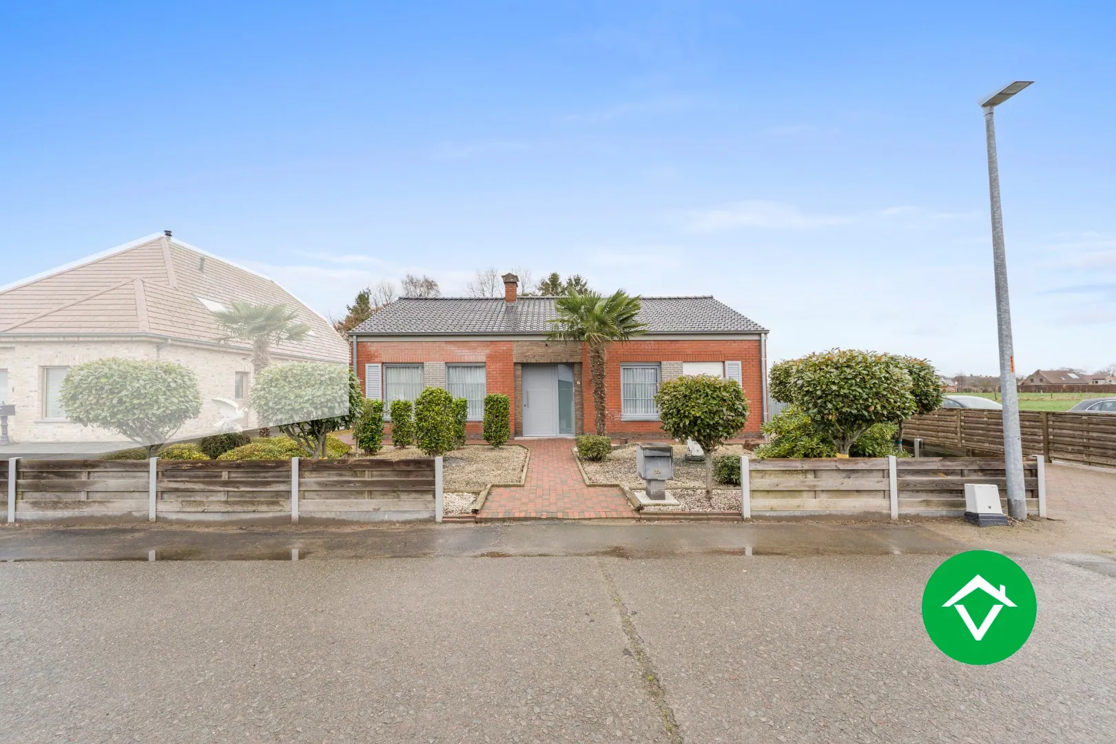 Deze alleenstaande woning is gelegen op een grondoppervlakte van 940 m² en bestaat uit: oprit - voortuin - inkomhal - living - keuken - nachthal - 2 slaapkamers - badkamer - toilet - zolder - tuin - 2 garages - verschillende opbergruimten.