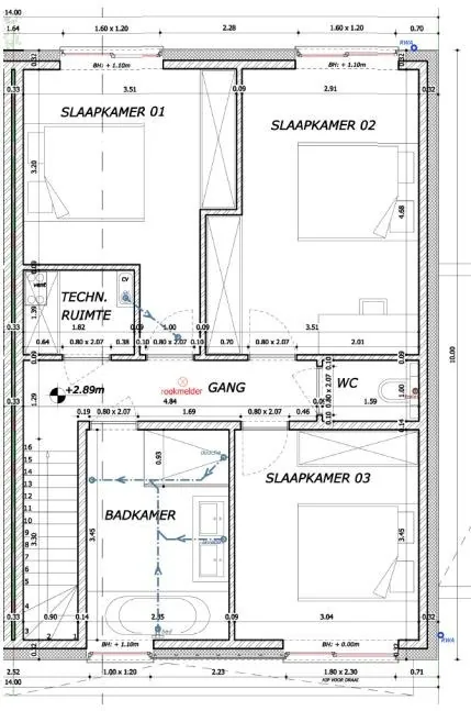 Op 1ste verdieping: nachthal - afzonderlijk toilet - 3 slaapkamers - badkamer. - technische ruimte.