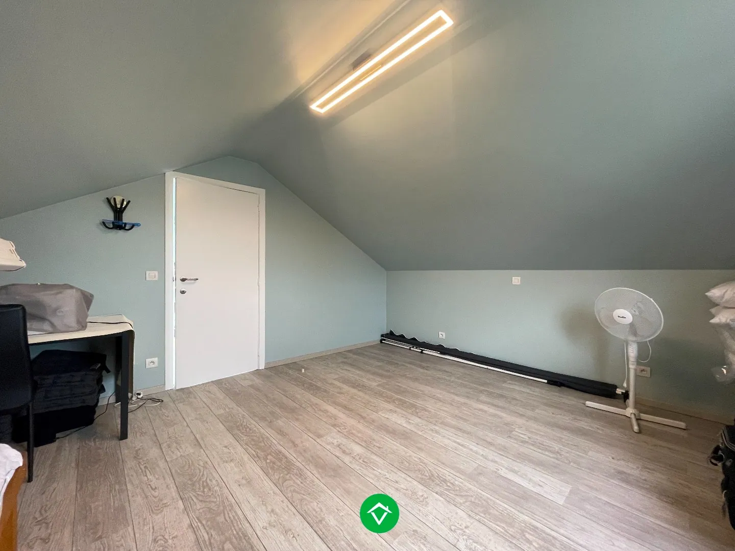 Op het eerste verdiep bevinden zich 2 ruime slaapkamers (14m² en 12,3m²). De nachthal verbindt deze twee ... volwaardige slaapkamers. Op de nachthal (9,4m²) is er bijkomende ruimte die kan dienen als hobbyruimte, speelruimte, bureau of opbergruimte. Daarnaast is er op de eerste verdieping een technische ruimte aanwezig (5,7m²) die eventueel ook kan dienen als dressing. In de technische ruimte bevindt zich de woonhuisventilator (Type: C+). In de technische ruimte als in één van de slaapkamers zijn er zolderbergingen beschikbaar.