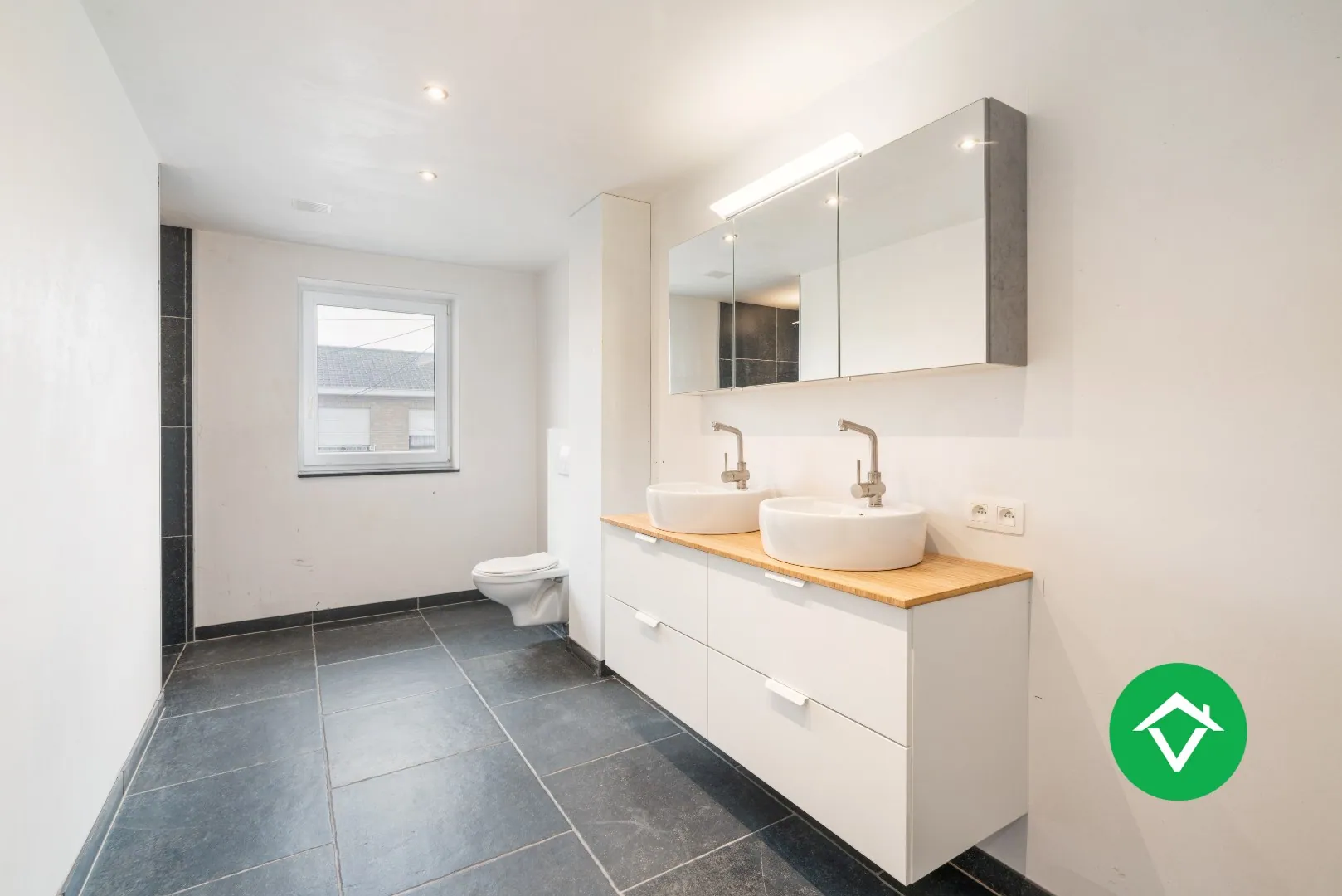 Op de eerste verdieping hebt u drie volwaardige slaapkamers waarvan één toegang biedt tot de zolder via een vaste ... trap. Daarnaast kan u ook de ruime badkamer terugvinden, voorzien van inloopdouche, lavabomeubel en toilet.