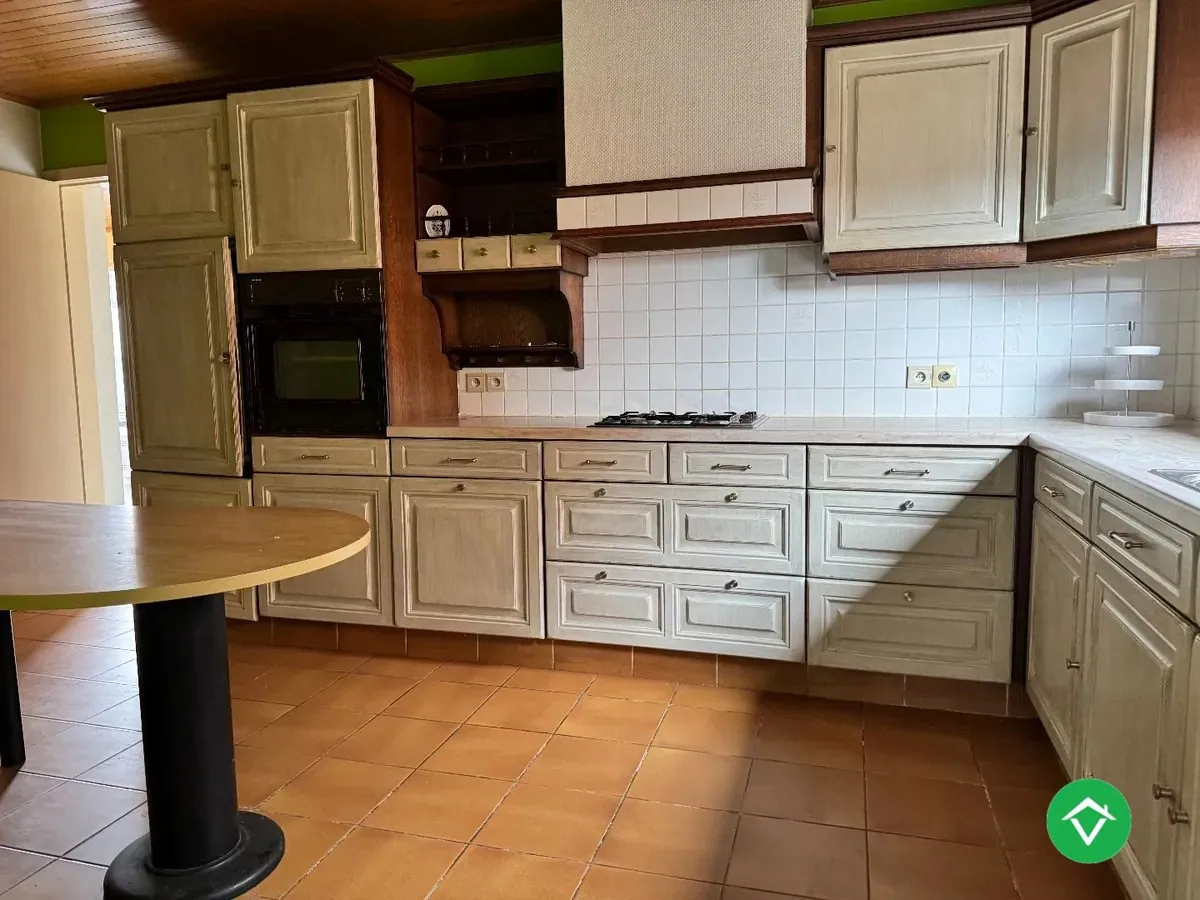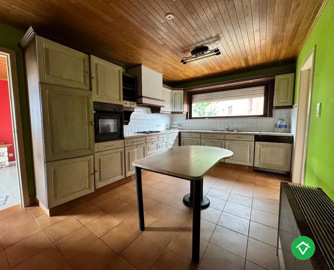 Deze alleenstaande woning is gelegen op een grondoppervlakte van 880 m² en bestaat uit: inkomhal - toilet - living - keuken - veranda - wasplaats - berging - kelder - terras - grote diepe tuin - garage met zoldering en berging - slaapkamer op het gelijkvloers - 2 slaapkamers op de bovenverdieping - dressing - badkamer met ligbad en afzonderlijke douche.