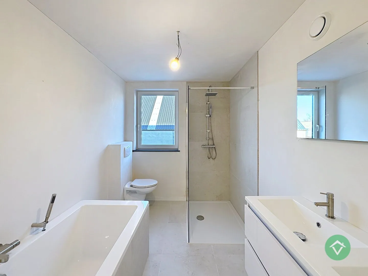 Op de bovenverdieping bevinden zich drie volwaardige slaapkamers, ... geschikt als kinderkamer, thuiskantoor of hobbyruimte. De badkamer is modern ingericht en voorzien van een inloopdouche, lavabomeubel en een ligbad. Daarnaast is er nog een afzonderlijk toilet op het gelijkvloers voor extra comfort.